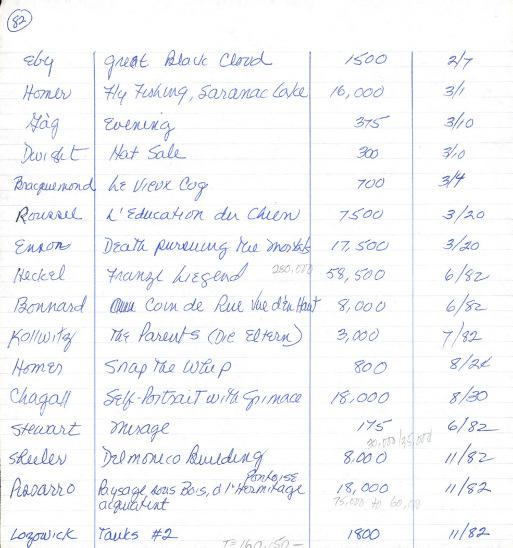 Like so many print collectors, Marianne Schwartz kept careful records of every acquisition to the collection. These handwritten lists kept by the family, tell the year of every purchase from the first in 1956 to the very last in 2014.