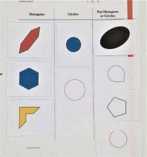 Clasificar figuras geométricas como círculos, hexágonos o ninguno de los dos