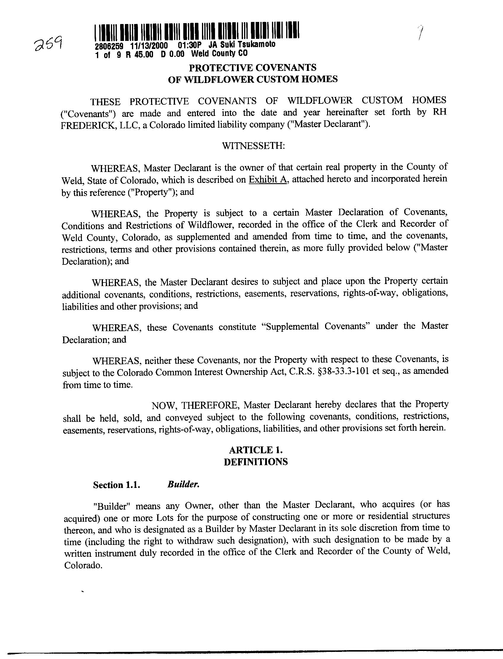 Legal Description : Fre 1cmf L10 Country Meadows Farm Fg #1 Amd #1