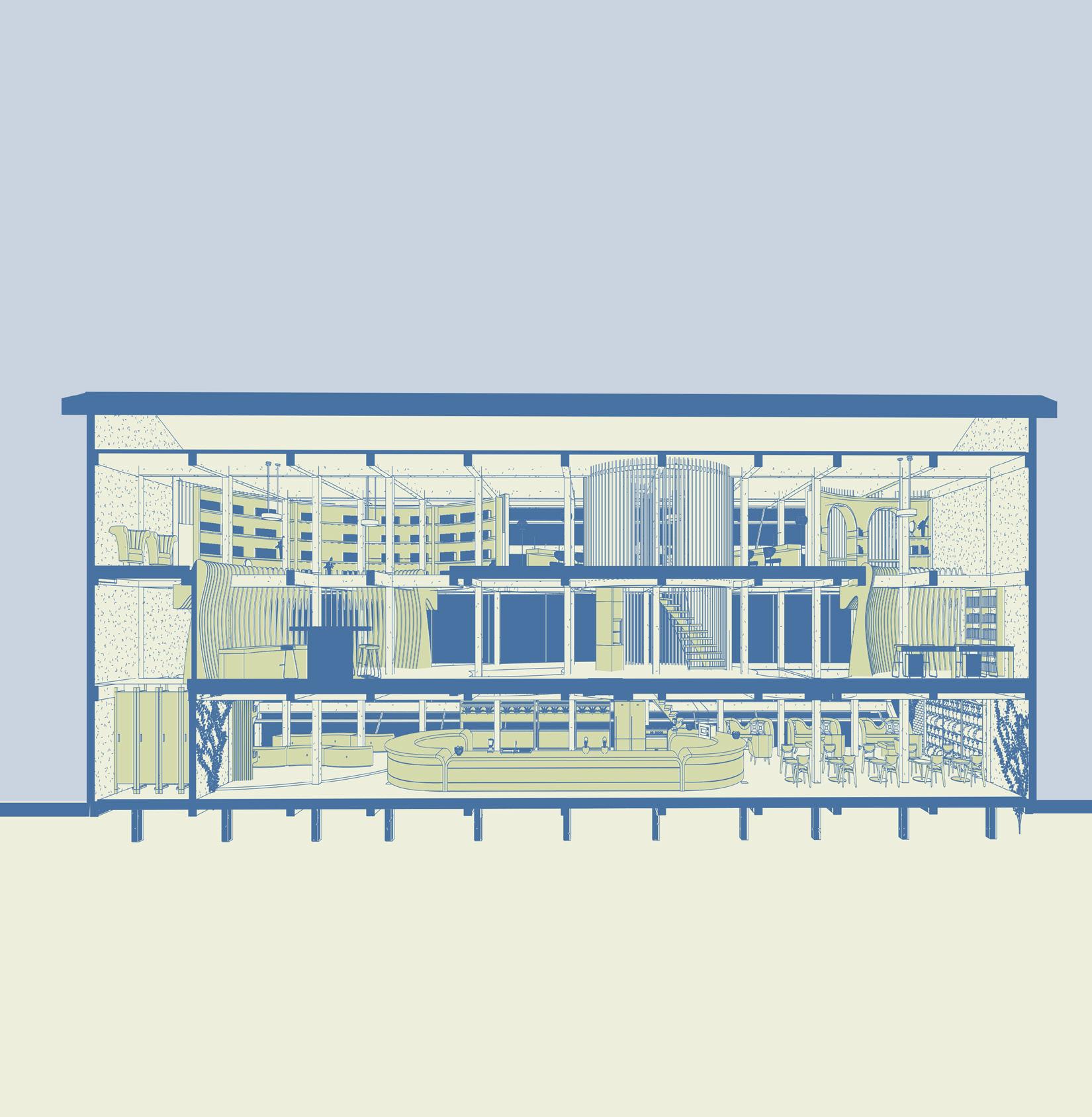 The floors of the upper levels were inspired by the clusters of the Ixora Javanica flower, encouraging people to come together like clusters.