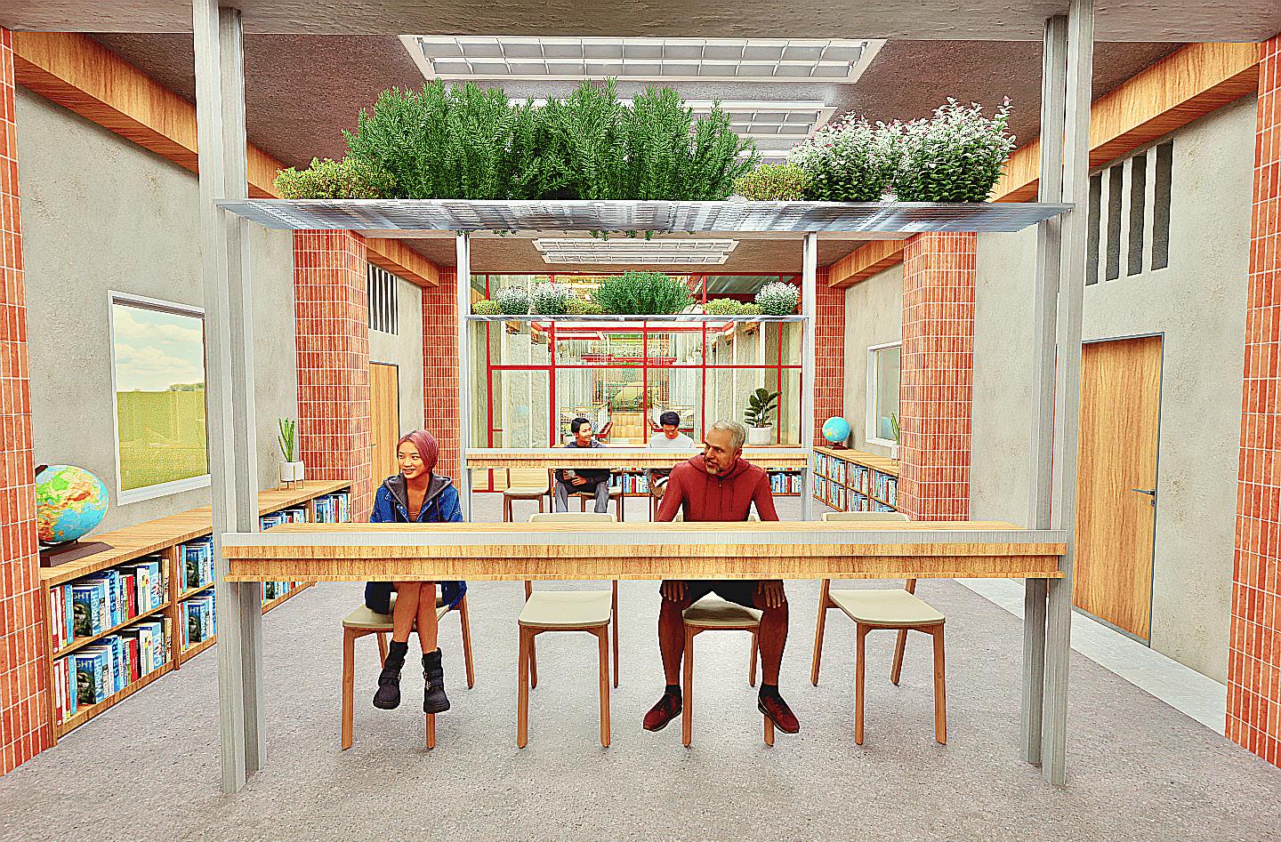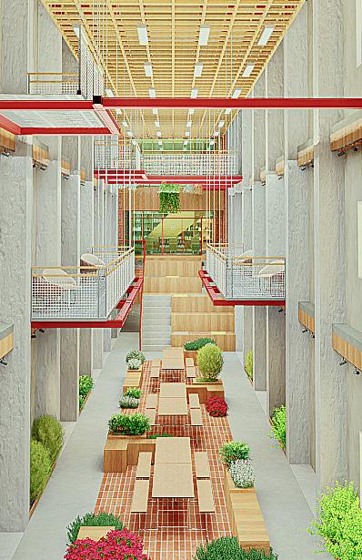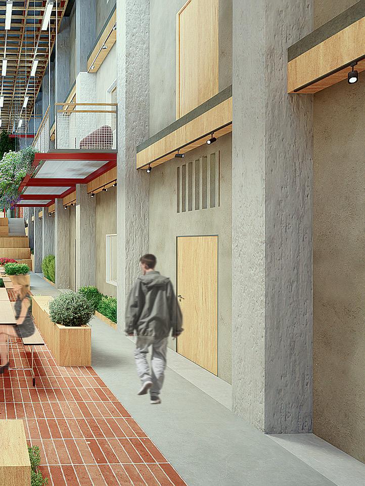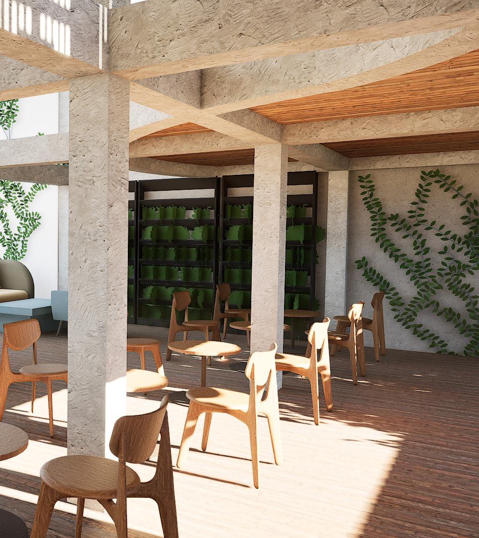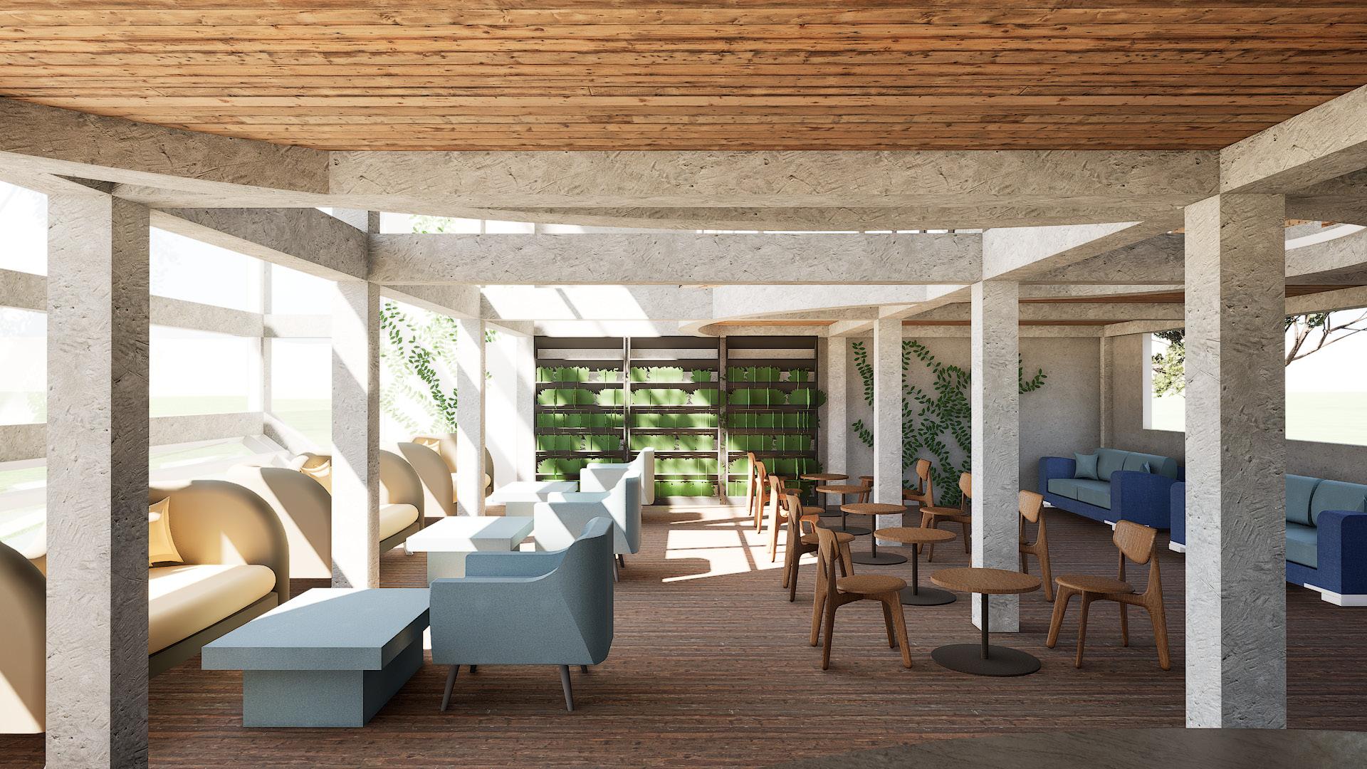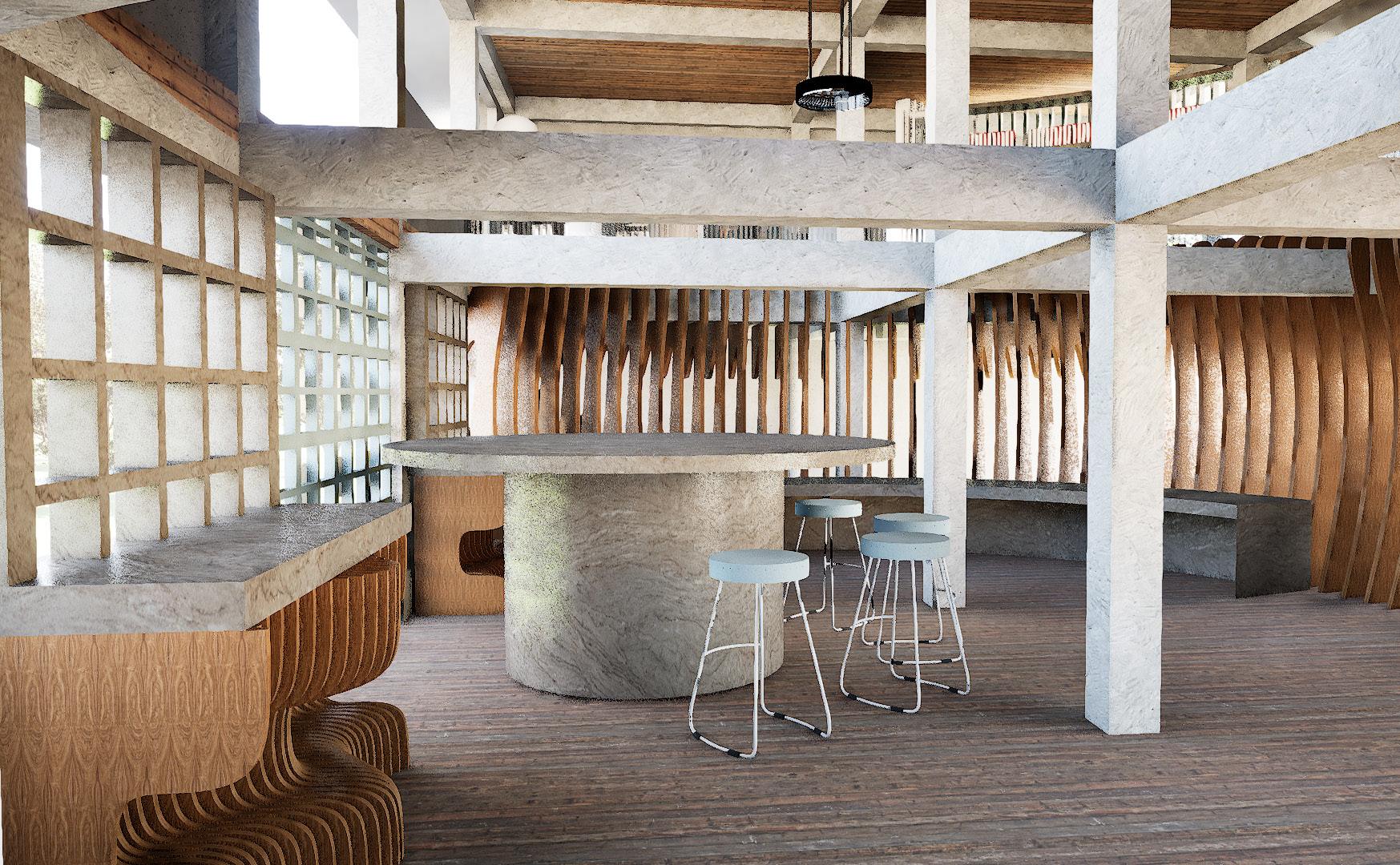 - Developed as a communal centre for migrant workers to take a break from their hectic lives. - The space aims to improve the mental well being of migrants as a safe space.