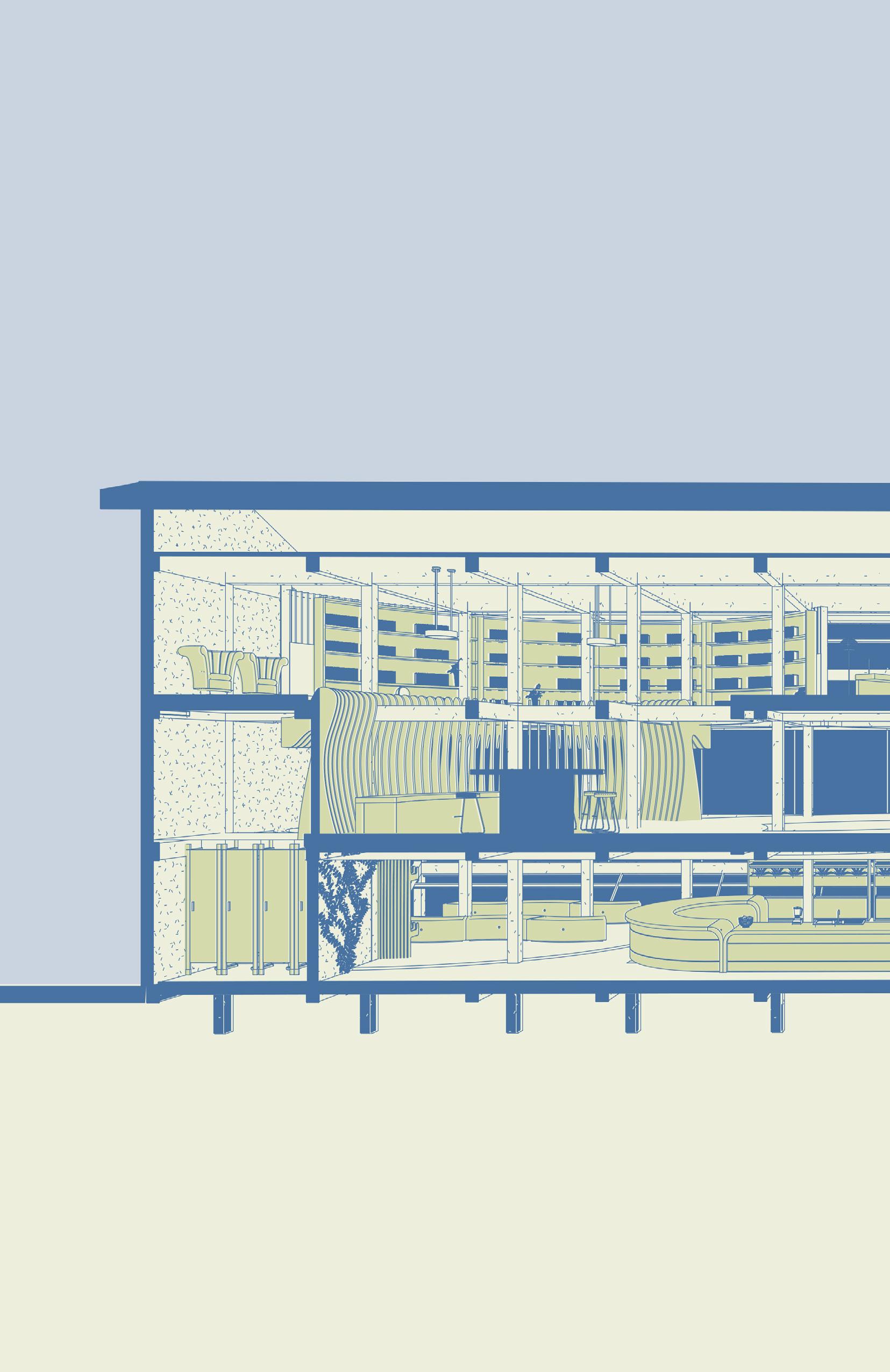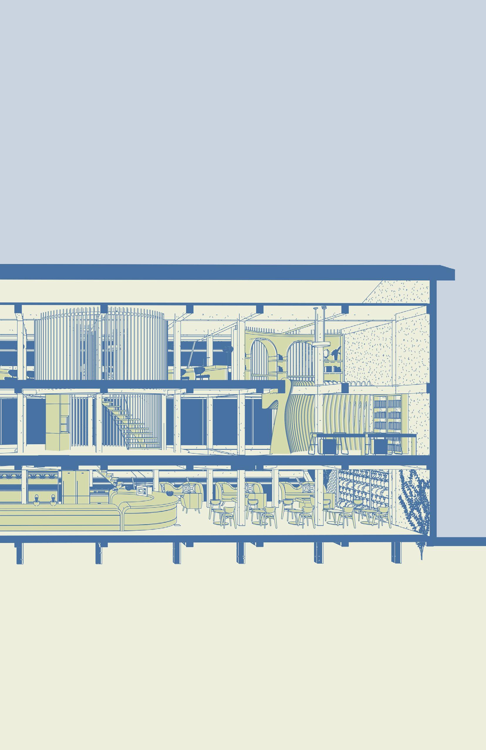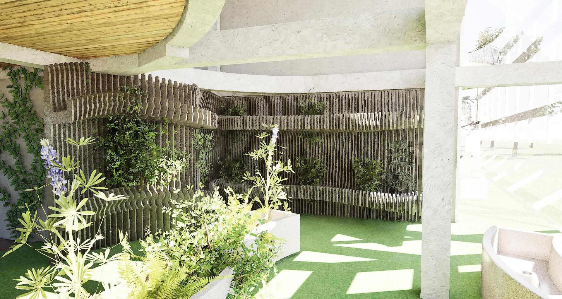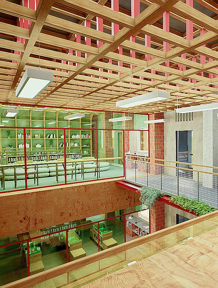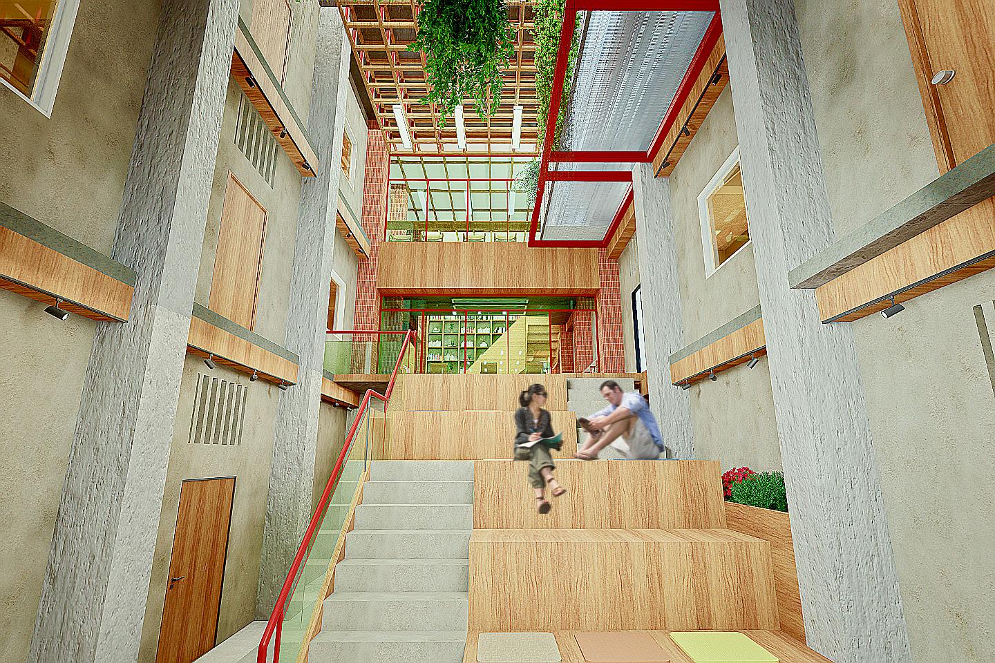 - Developed as a communal centre for migrant workers to take a break from their hectic lives. - The space aims to improve the mental well being of migrants as a safe space.