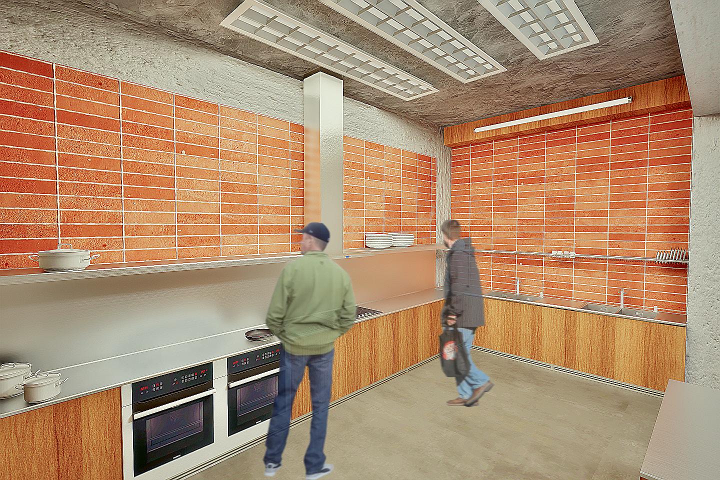 A spacious kitchen for migrant workers to cook meals with one another.