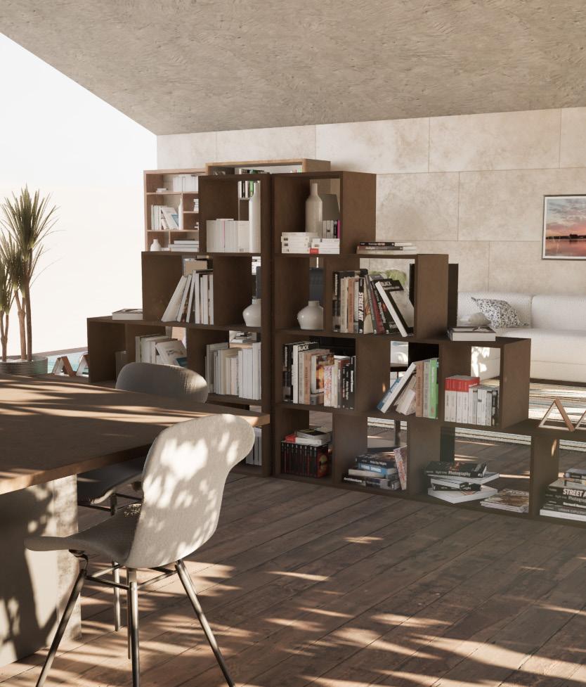The space also aims to achhieve a cozy and comfortable affect by using prdominantly warm tones for its materials. This is to ensure that while having an efficient space, the two students can relax during their time at home.