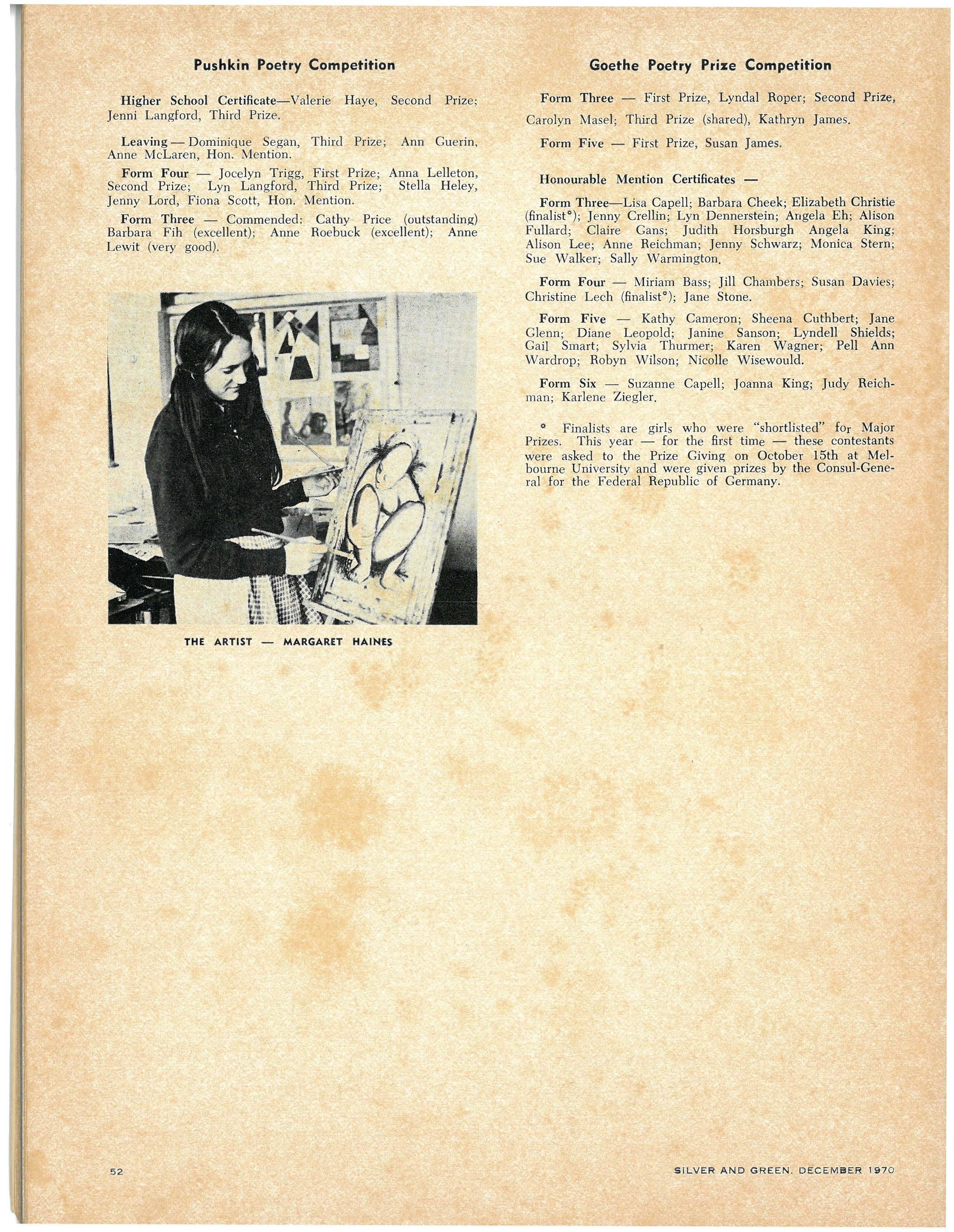 Higher School Certificate-Valerie Haye, Second Prize; Jenni Langford, Third Prize.