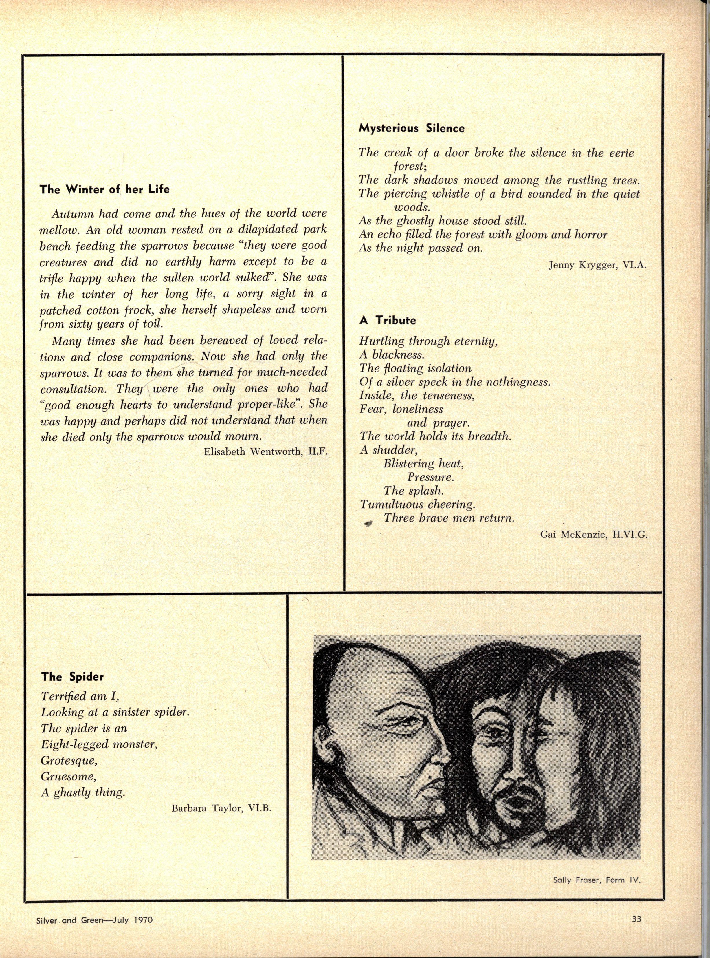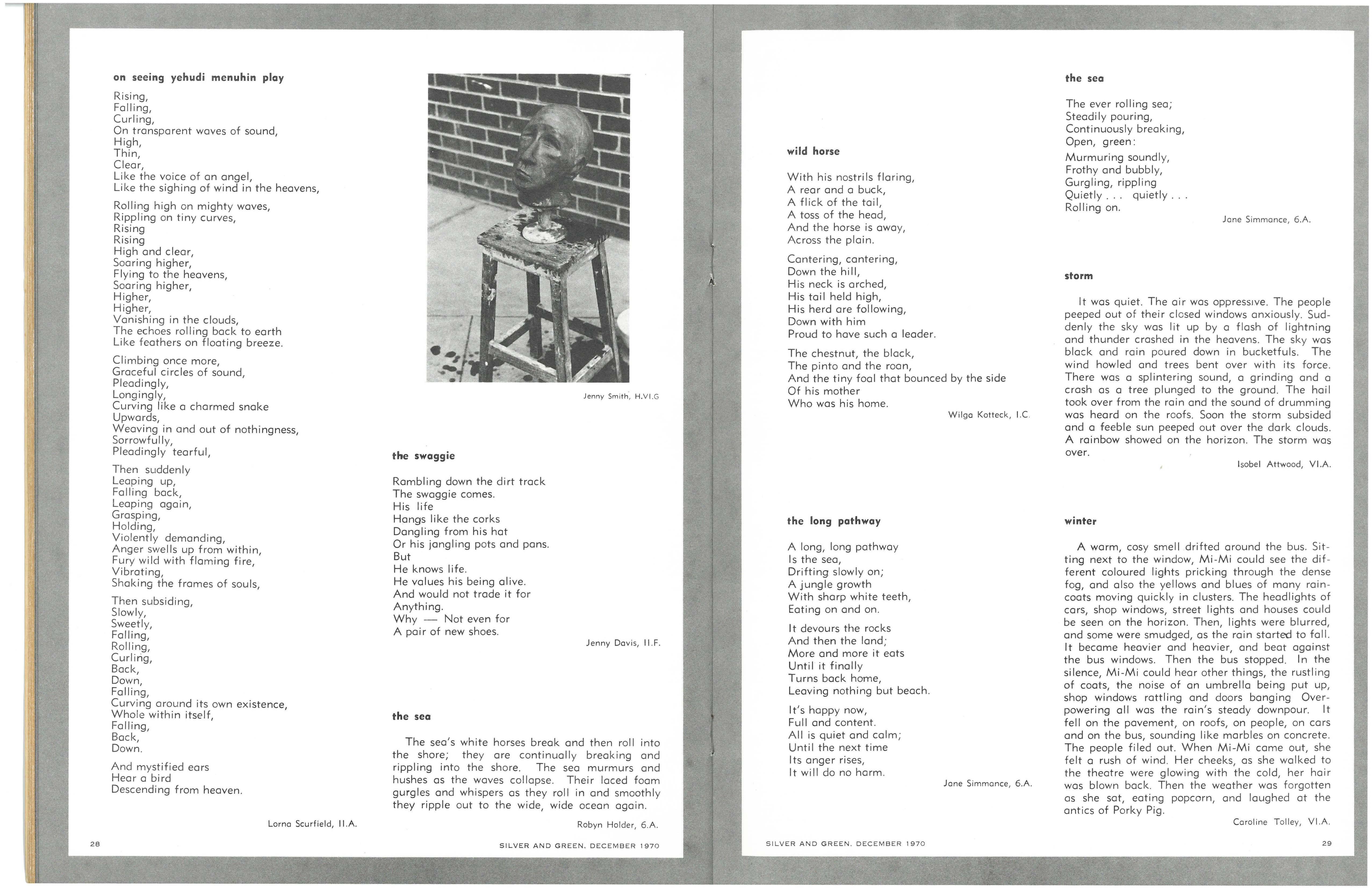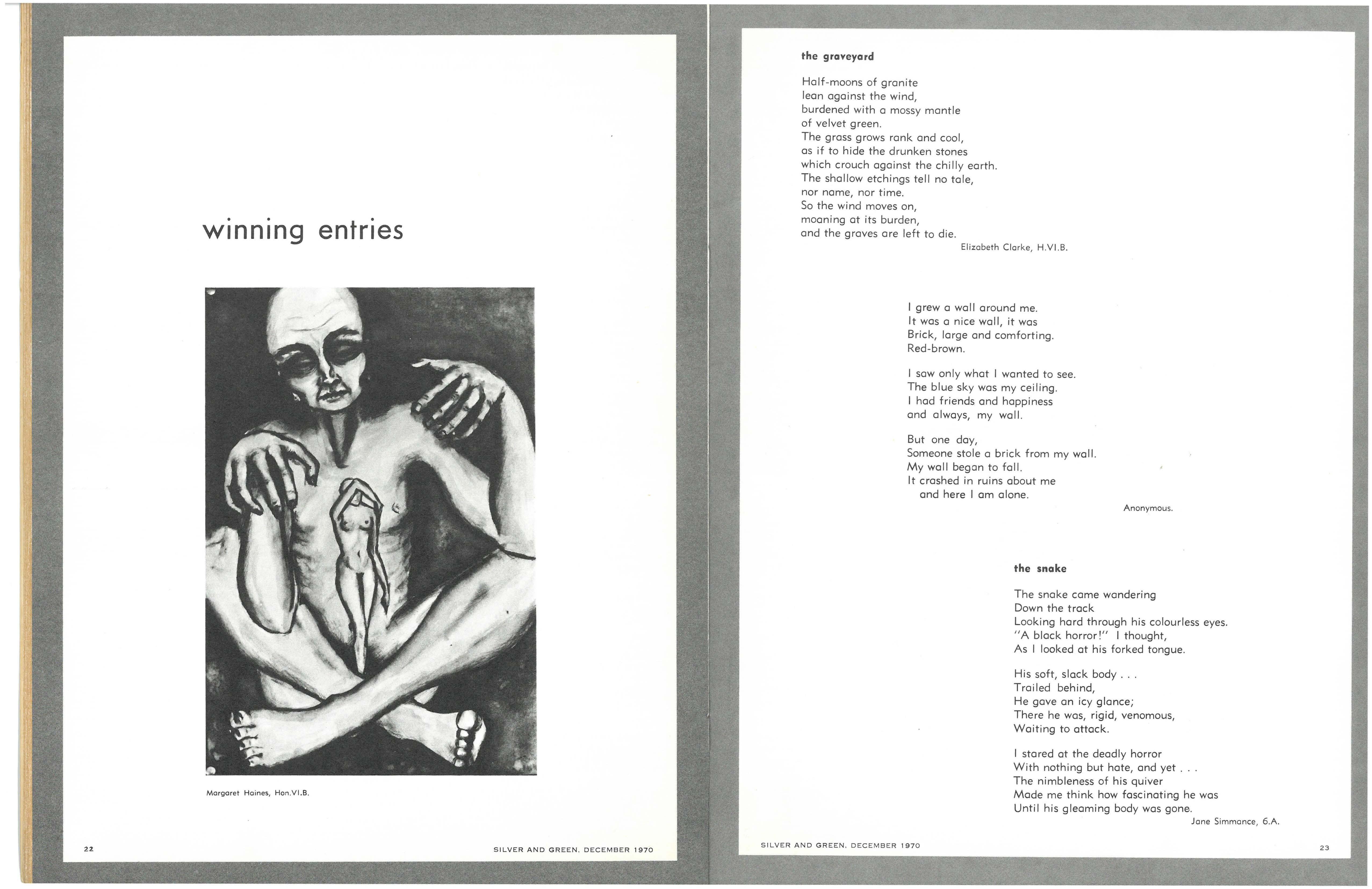 Form Four - Jocelyn Trigg, First Prize; Anna Lelleton, Second Prize; Lyn Langford, Third Prize; Stella Heley, Jenny Lord, Fiona Scott, Hon. Mention