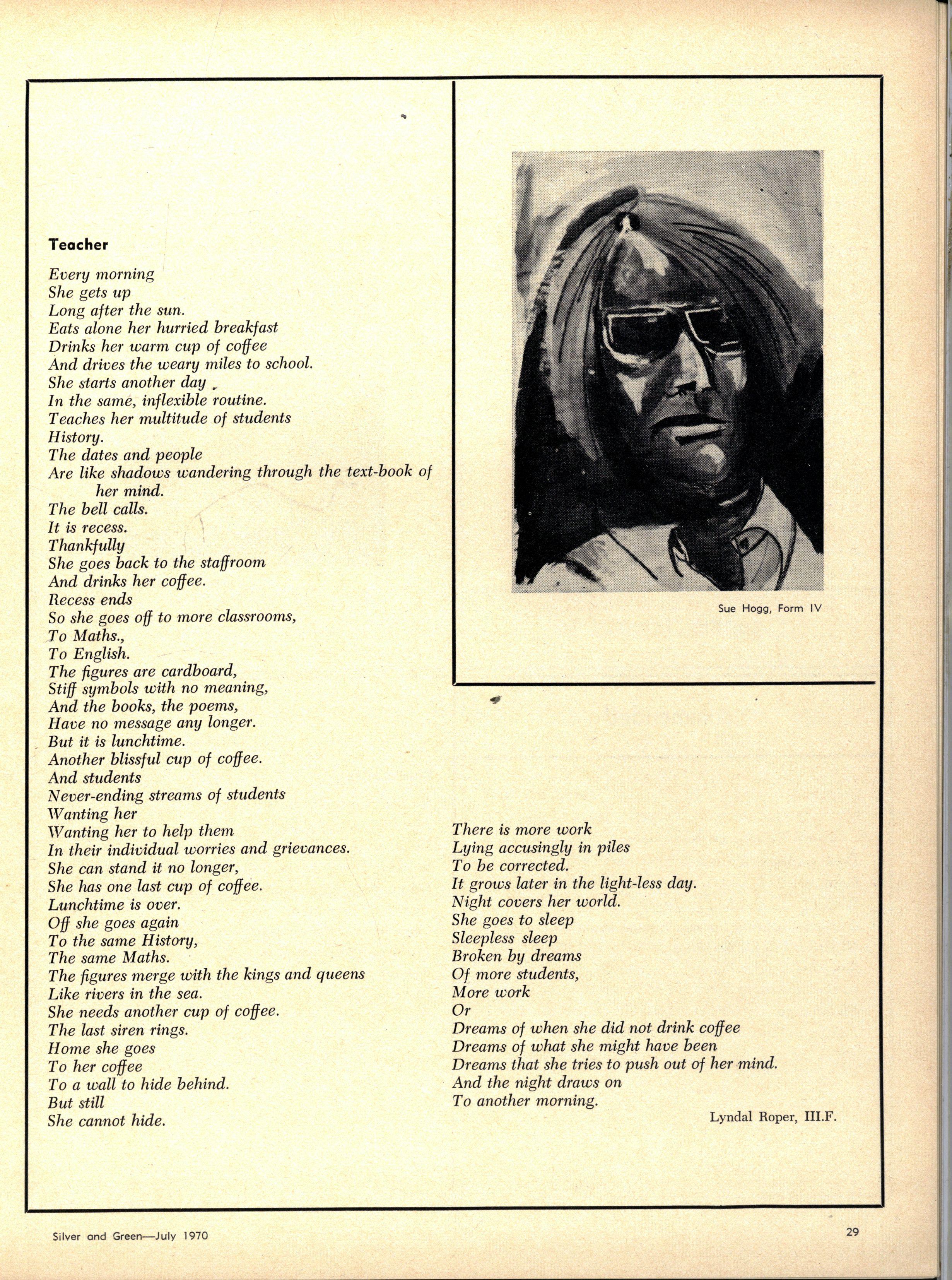 In the second term, on 10th July, there will be a "Tribute to Dickens" To celebrate the centenary of Charles Dickens, the Senior Drama Group and Senior Speech students will present this tribute It has been prepared by Miss Sutton and the presentation will be directed by Mrs F Wilson
