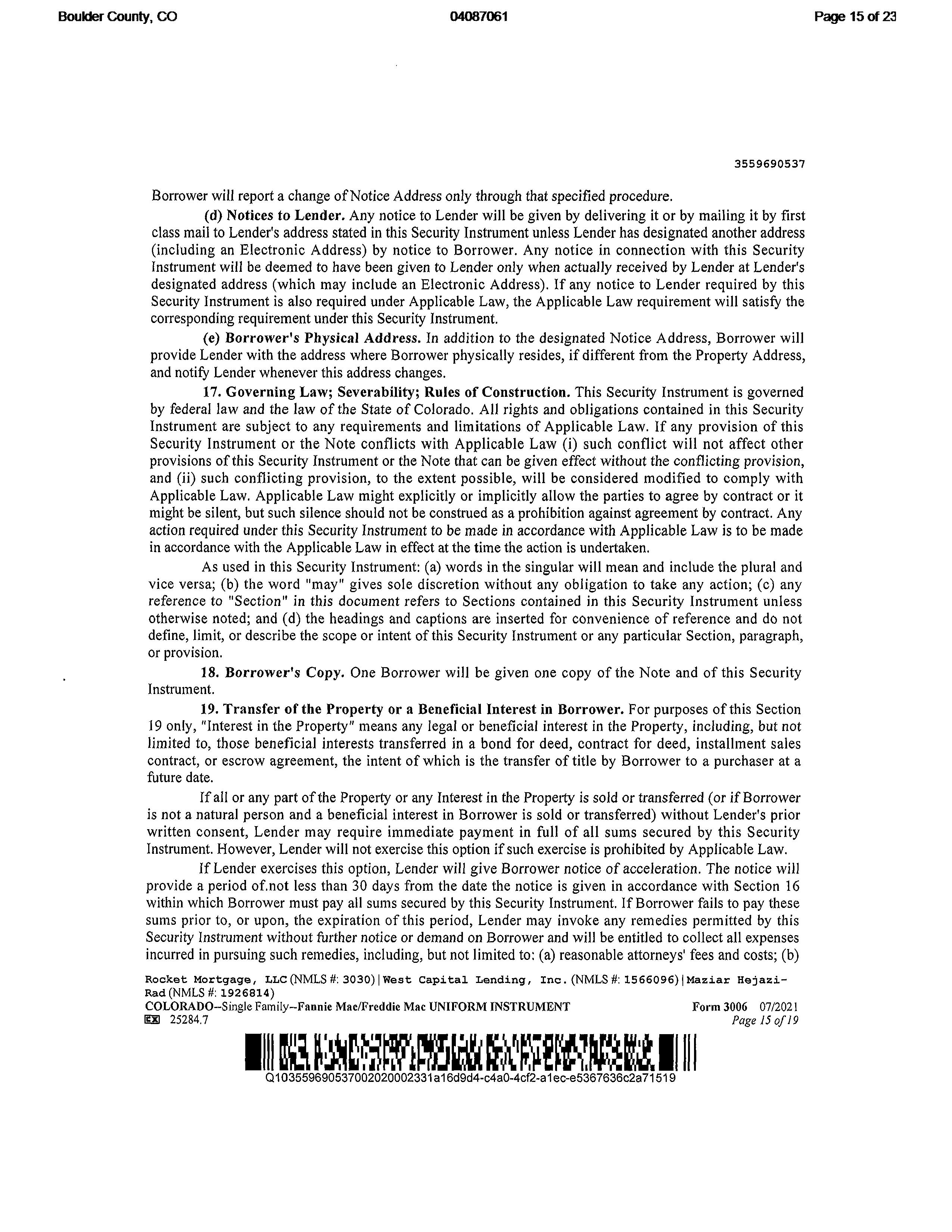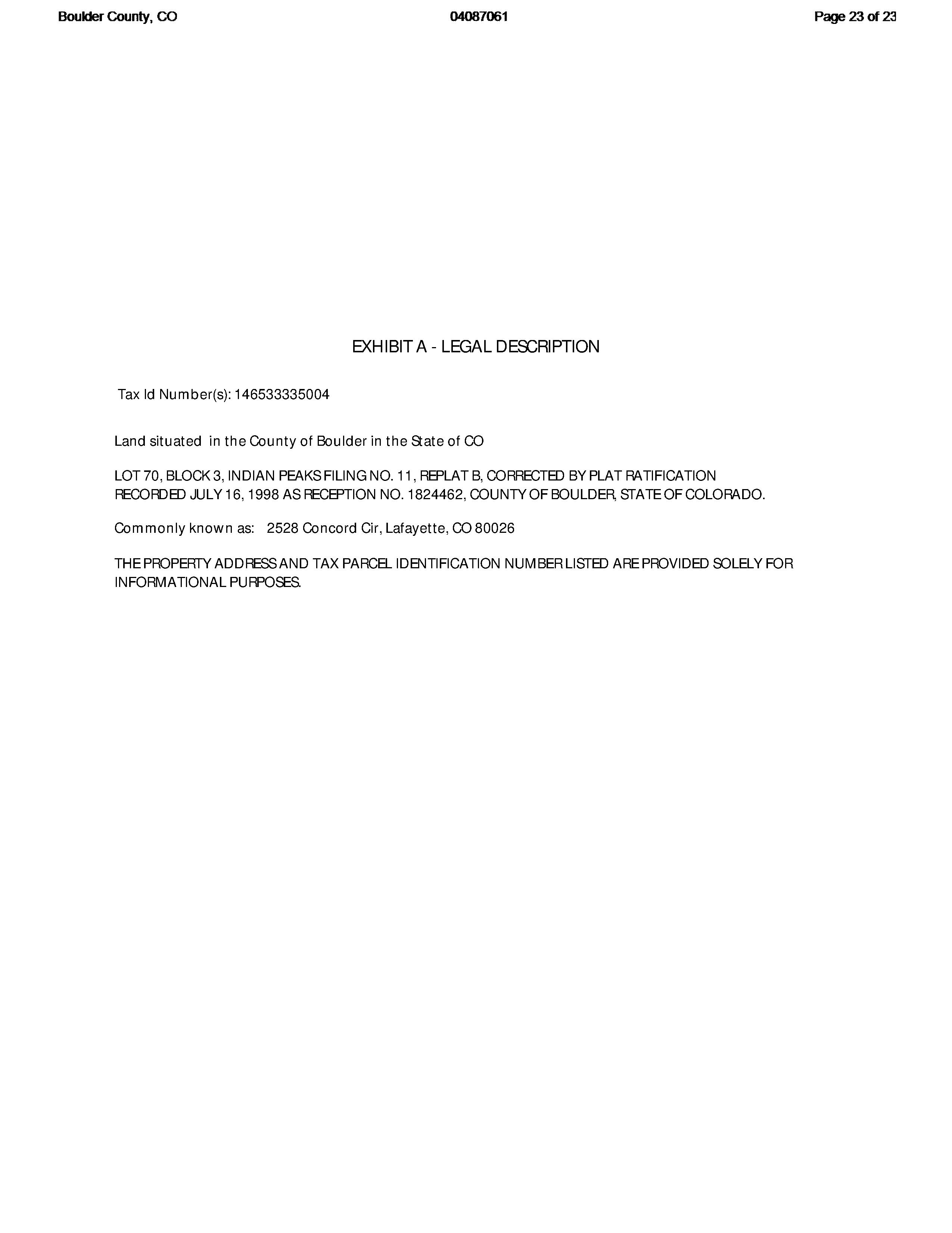 Mailing Address : 2528 Concord Cir, Lafayette CO 80026-3421 R007