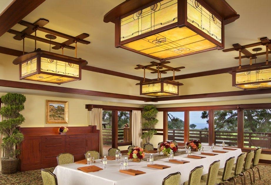 This space features a soaring, wood-beamed ceiling and Tiffany chandeliers. Host your meeting surrounded by exquisite Craftsman architecture with large windows as well as a private patio providing sweeping vistas of the Torrey Pines North and South courses and Pacific Coastline.