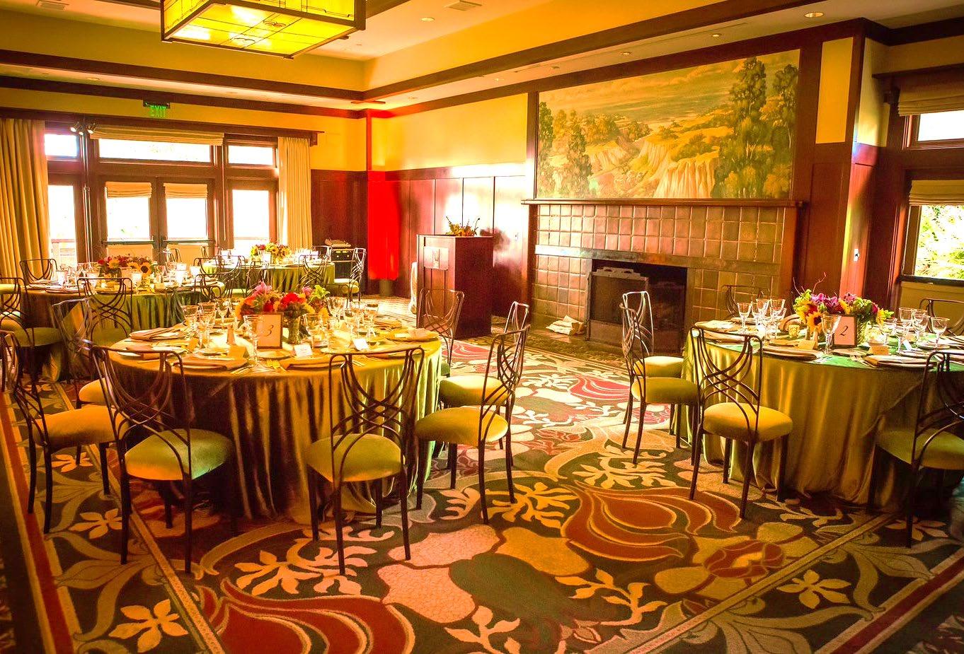 Alfred Mitchell's floor-to-ceiling windows offer a stunning backdrop for an event. The outdoor third-floor patio completes this space with views of the Arroyo Terrace lawn below and golf course in the distance.
