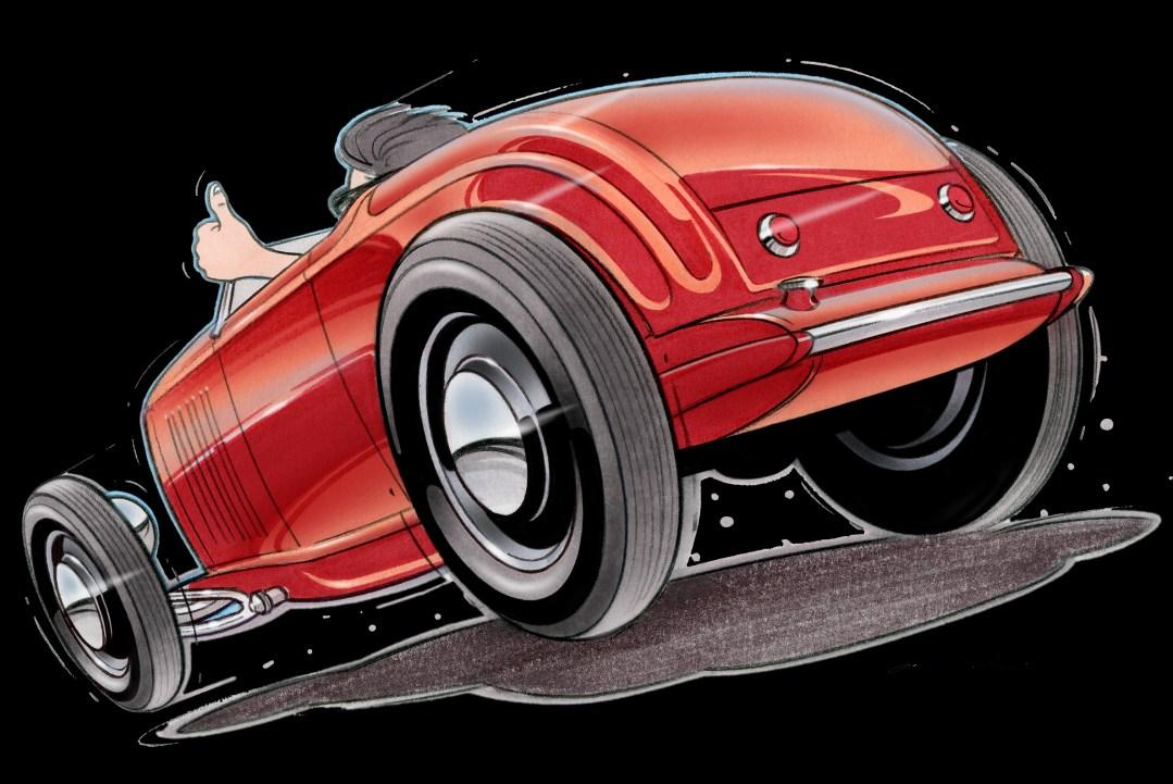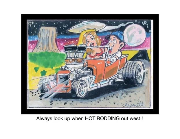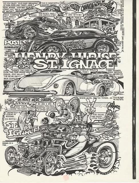 A lot of you have been around this hobby for some time (You Graybeards!). Since you have been, you will probably remember “Henry HiRISE.” Dave’s unique artwork was seen monthly in each issue of StreetRodderfor 40 years. It was featured in other magazines like Custom Rodder too. We did it, and we bet you did too, when your new issue would hit your mailbox or newsstand, one of the first things you would do would be to flip to the back of the magazine and check out the latest HENRY HIRISE! You wanted to see it and see who was featured in it. You read all the little comments and hidden art on the page to see who was being featured and how!