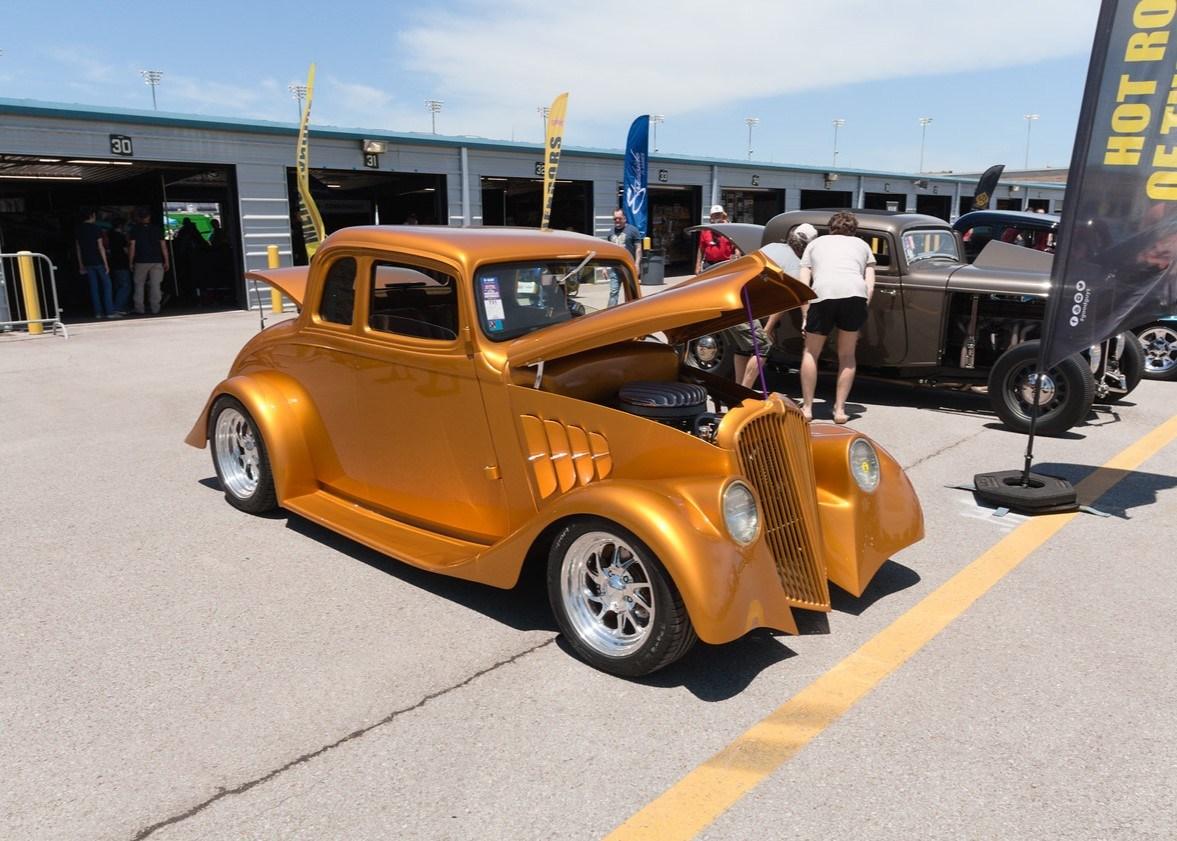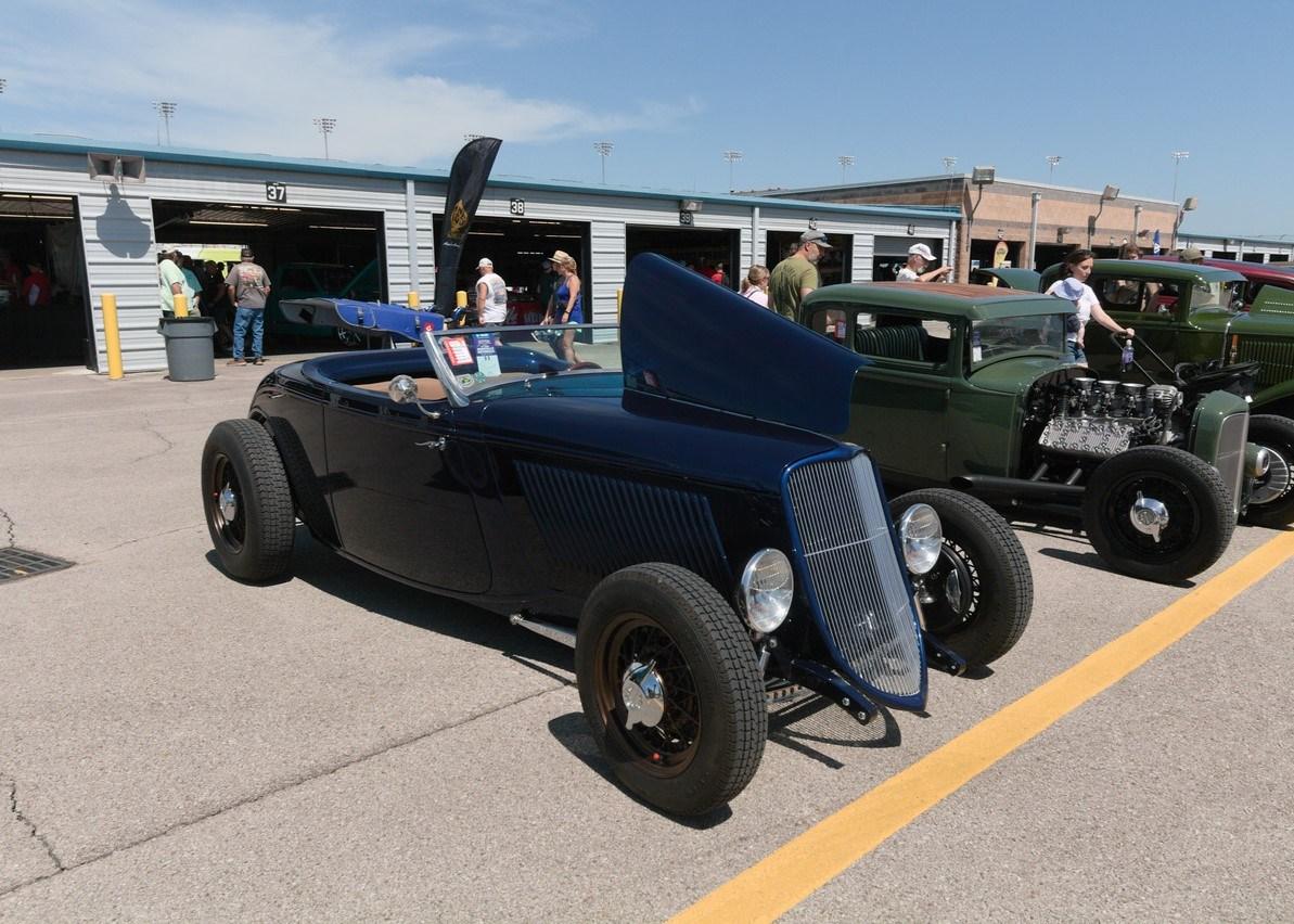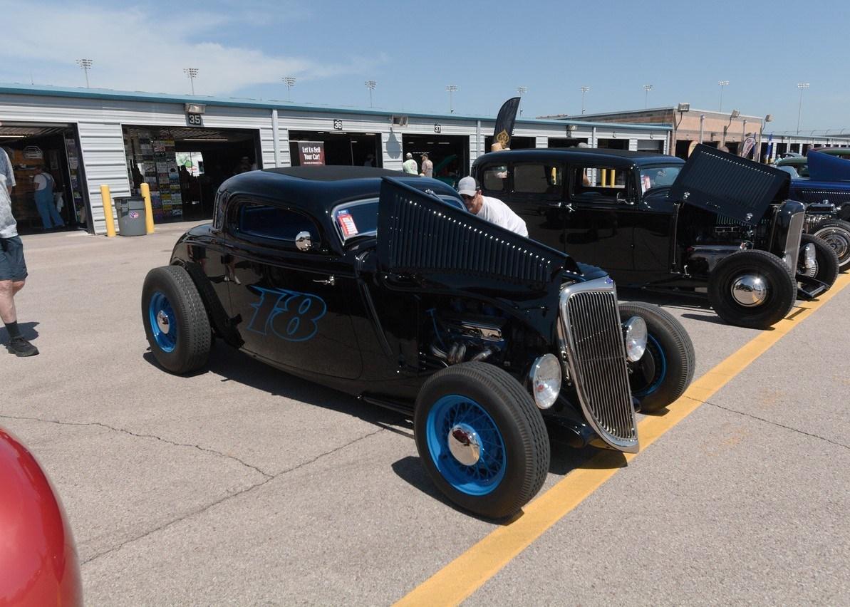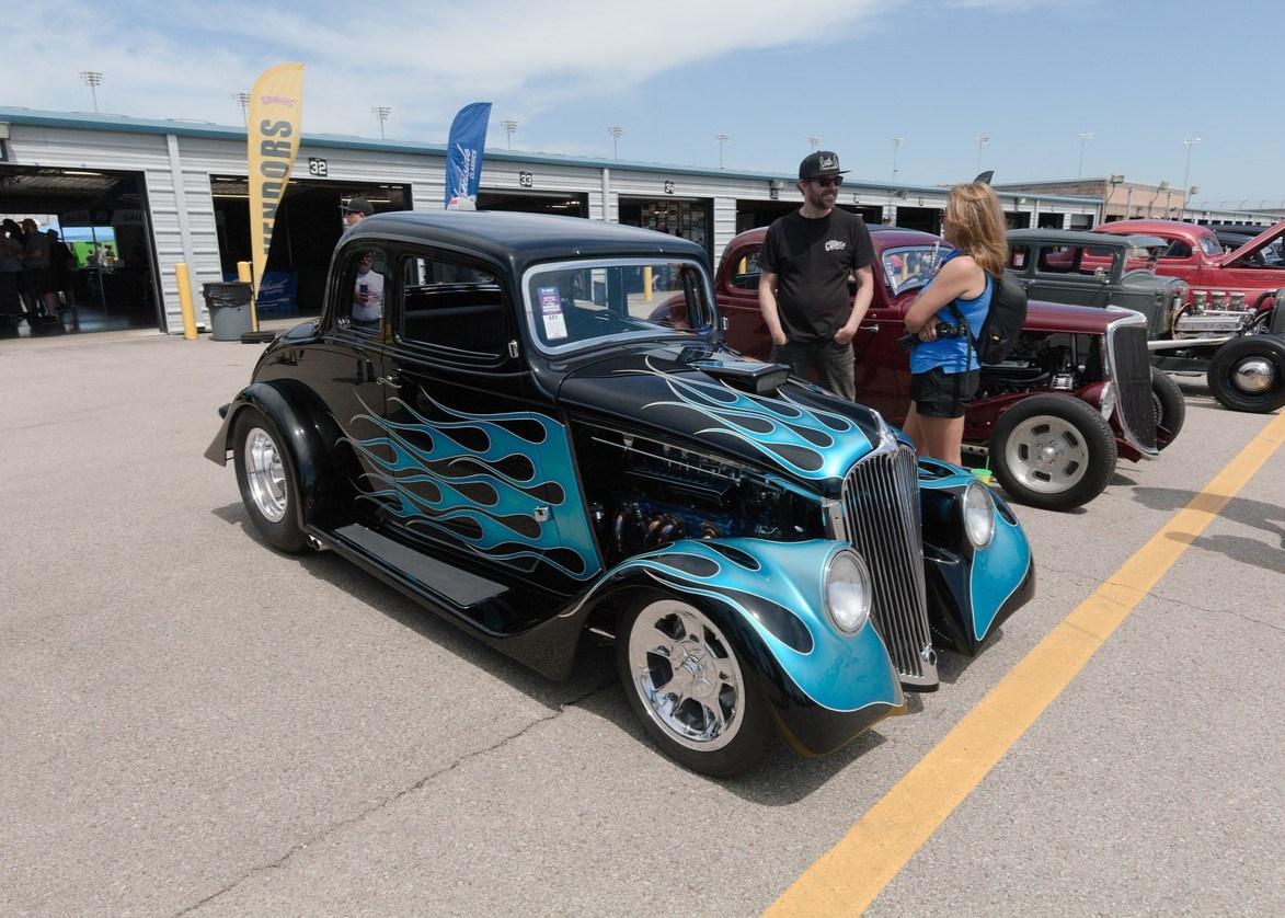 until Sunday to see who would win the coveted Tanks Hot Rod Of The Year Award. Taking home the top honor on Sunday afternoon was Dave Kroona’s 1933 Willys Coupe, a breathtaking flamed steel craft built by South City Rod & Custom. The ‘33 Willys was a standout through both the reliability run and pit drag showdown. Daybreak on Saturday saw participants waiting in line to get the prized parking spot they wanted and after securing it they got busy cleaning up and wiping down their cool rides in preparation for a packed day. of gearhead fun.