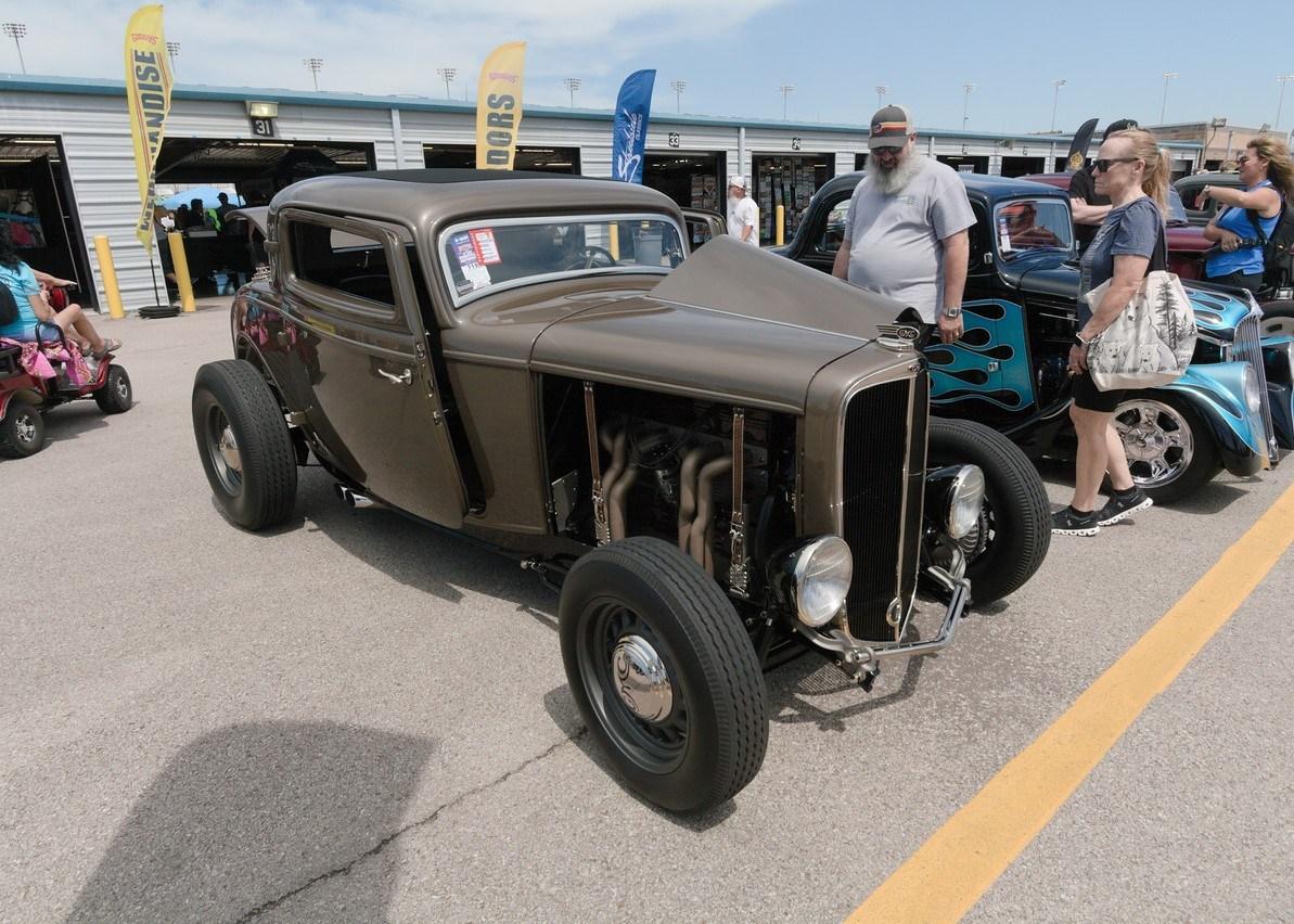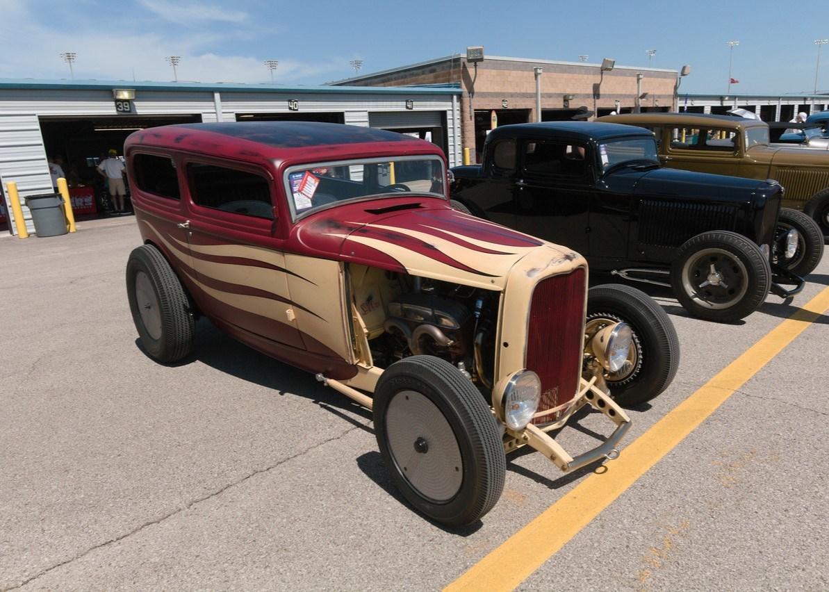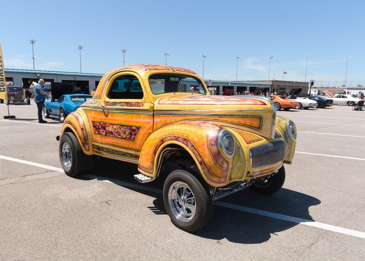 until Sunday to see who would win the coveted Tanks Hot Rod Of The Year Award. Taking home the top honor on Sunday afternoon was Dave Kroona’s 1933 Willys Coupe, a breathtaking flamed steel craft built by South City Rod & Custom. The ‘33 Willys was a standout through both the reliability run and pit drag showdown. Daybreak on Saturday saw participants waiting in line to get the prized parking spot they wanted and after securing it they got busy cleaning up and wiping down their cool rides in preparation for a packed day. of gearhead fun.
