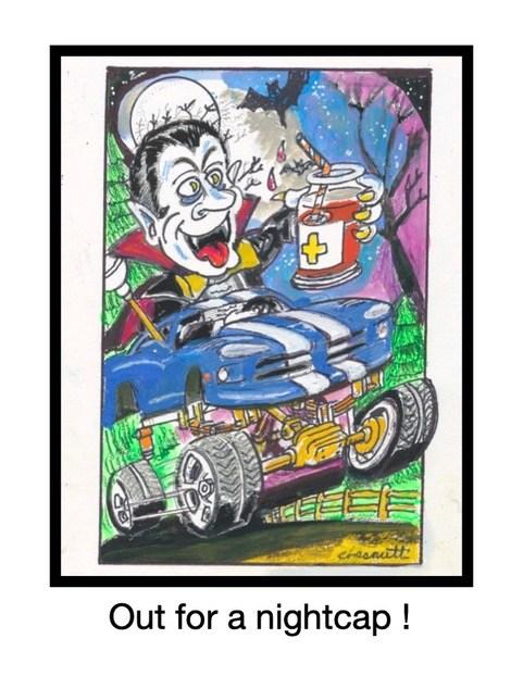 David has been heavily influenced since he started drawing by WEIRD O Model cars he built as a kid and also by Bill Campbell who did artwork for many Model Car Kit boxes.