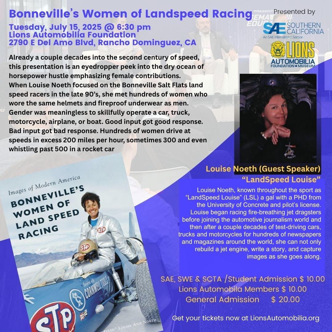Make plans on being part of a very fast night! With “LAND SPEED” Louise Noeth! After her brief introduction of the sport and its history viewed form the helmet-wearing female perspective, a panel discussion will follow with: Eddy Borysewicz, Donny Cummins, Dave Davidson, Seth, Tanis & Tegan Hammond, Al Teague, Danny Thompson, Judy Sights & Steve Watt