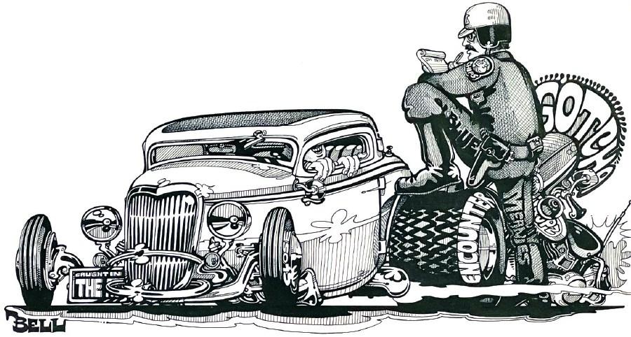 Dave had his drawing hand on the pulse of the hot rod & custom industry. He talked to what seemed like everyone and his art would reflect that with what was getting ready to come out of a shop or just had come out of a shop or a friends latest ride. His artwork for the STREET RODDER Column “COP SHOP COUPE, inspired Tom Prufer to build the COP SHOP COUPE!