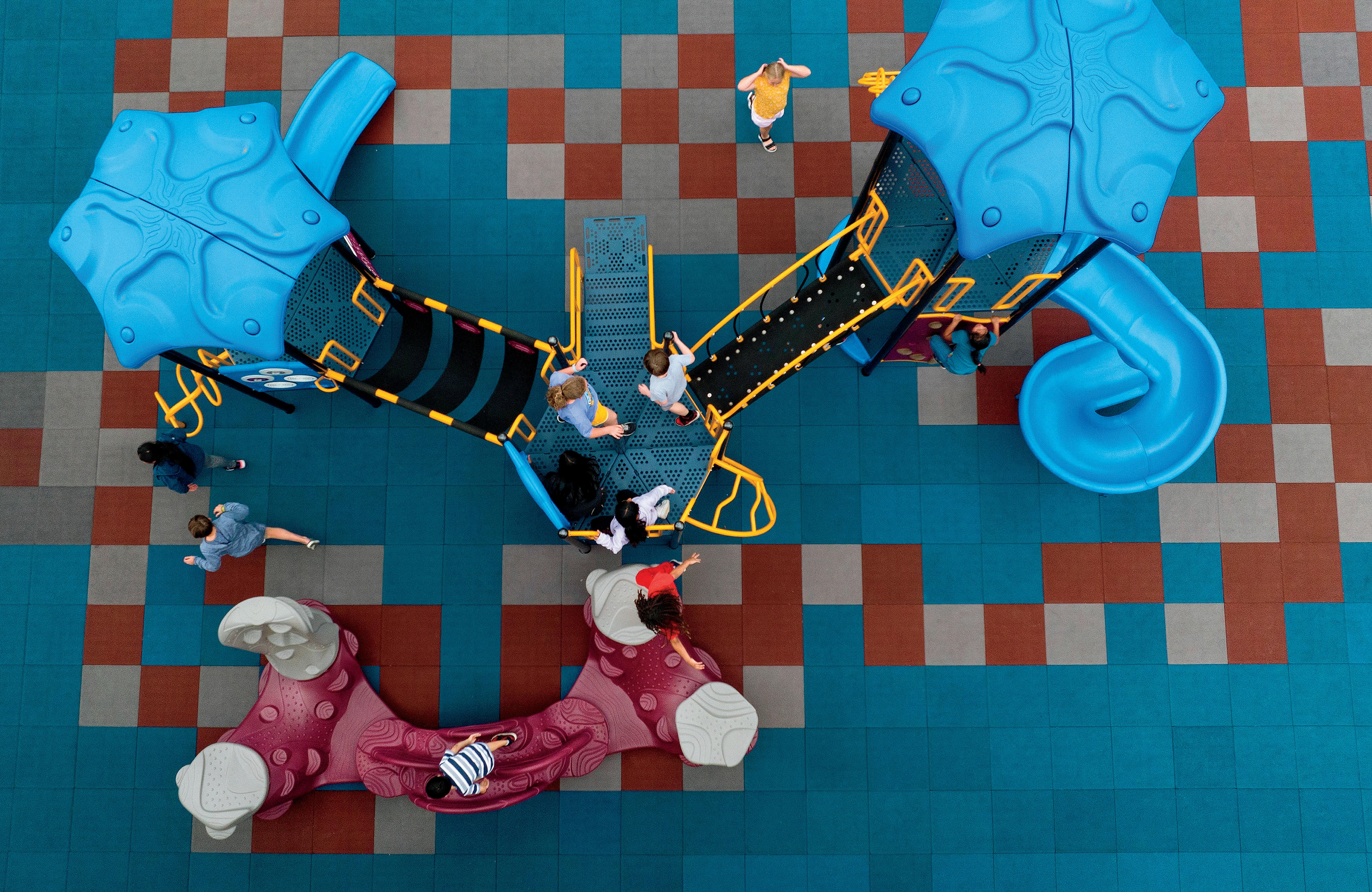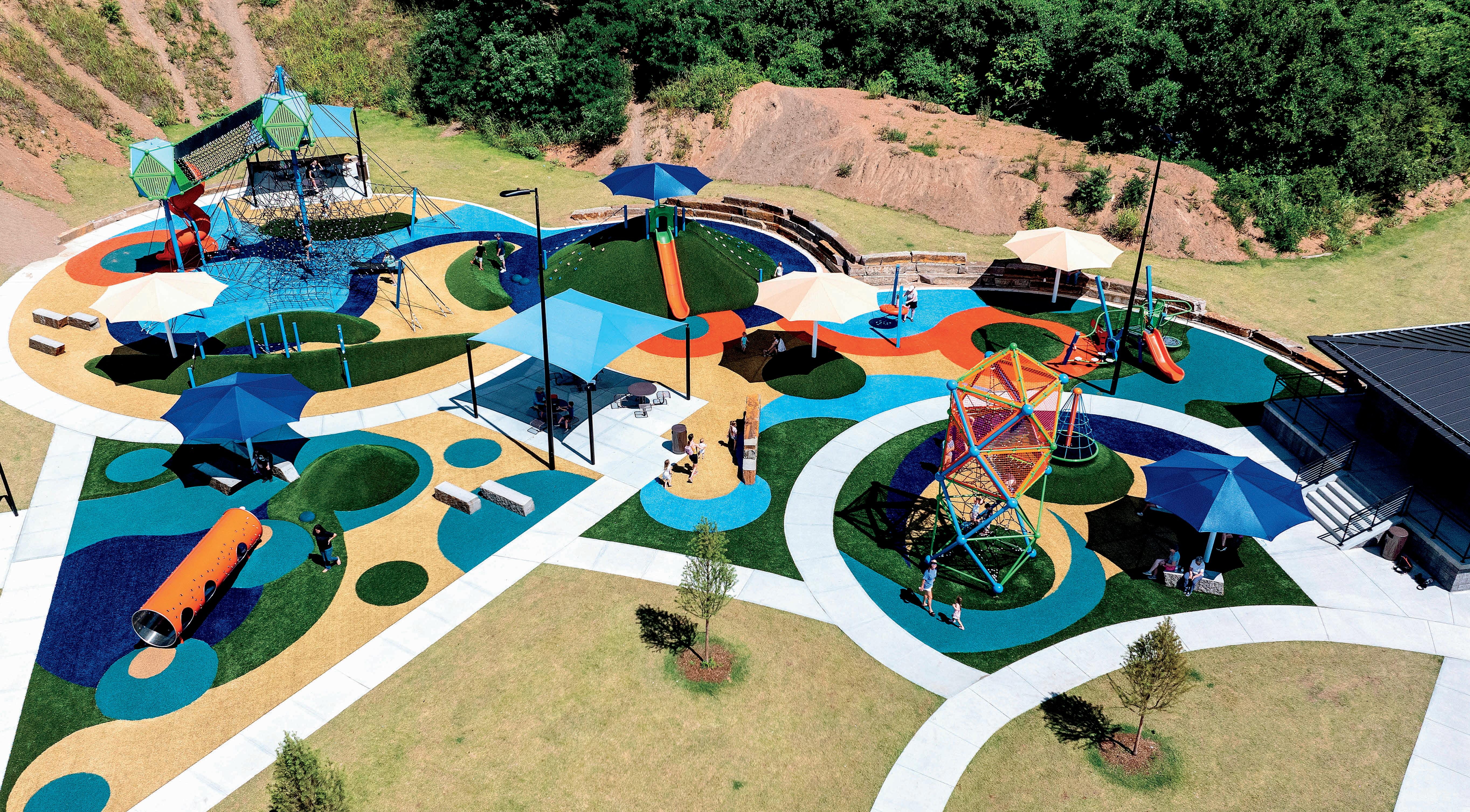 When designing recreational surfacing, it's important to consider safety, accessibility, and durability. Surfacing has evolved into much more than a safer play requirement. Consider surface play, gaming and educational activities designed right into the surface. Bright colors, patterns, and interactive designs like mazes or hopscotch help attract families to your play space.