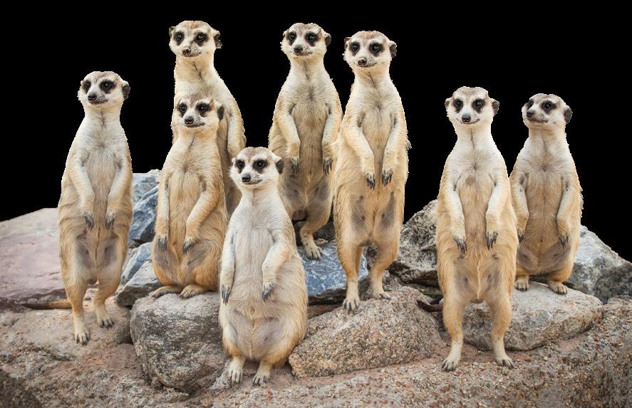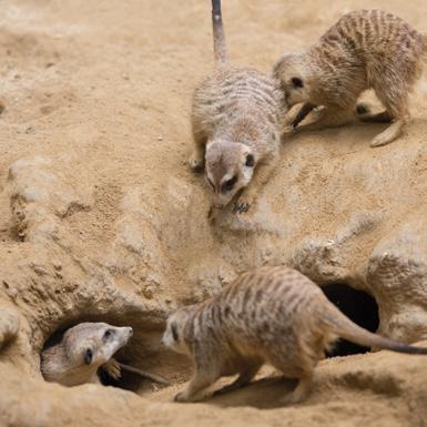 Meerkats live in big groups. They take turns climbing to a high spot to watch for enemies. If a guard barks a warning, everyone runs and hides in their underground tunnel.