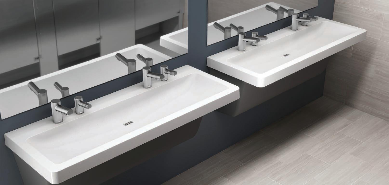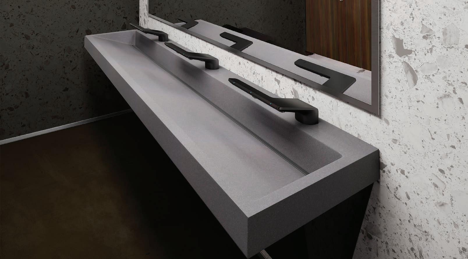In total, 147 all-in-one fixtures and a combination of single-, double- and triple-station washbasins made of non-porous natural quartz were specified for the project.