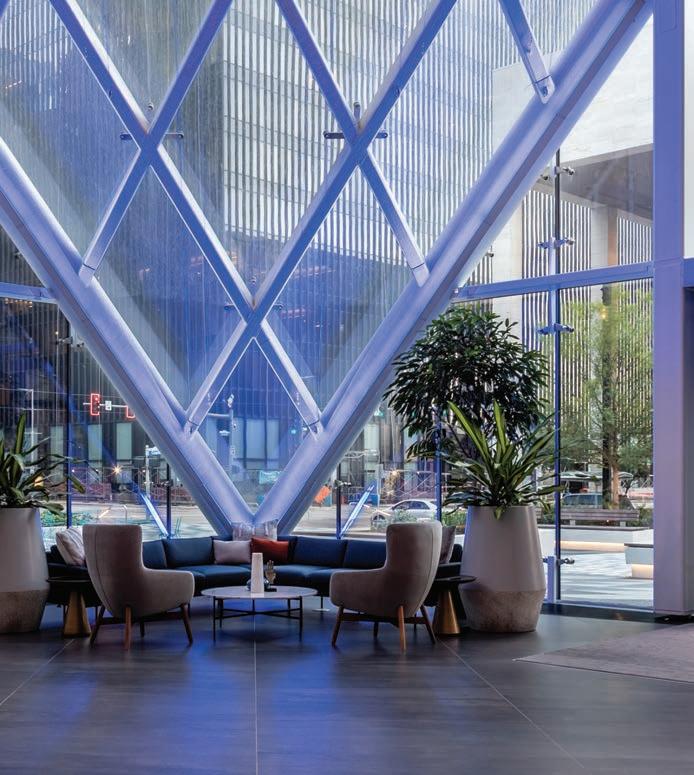 On the other end of the anxiety spectrum, the impetus behind the brainchild of Skidmore, Owings, & Merrill’s (SOM’s) Urban Sequoia was urgent need. At COP26, the 2021 United Nations (U.N.) Climate Change Conference, SOM first presented the concept of a carbon-absorbing high-rise building. They were immediately deluged with the question, “Can we build it now?” So, the team regrouped and went back to their drawing boards to find out if it was possible for architecture to capture carbon from the atmosphere with the technology, systems, and materials available today. To learn what they discovered, start reading “Urban Sequoia NOW” on page 68.