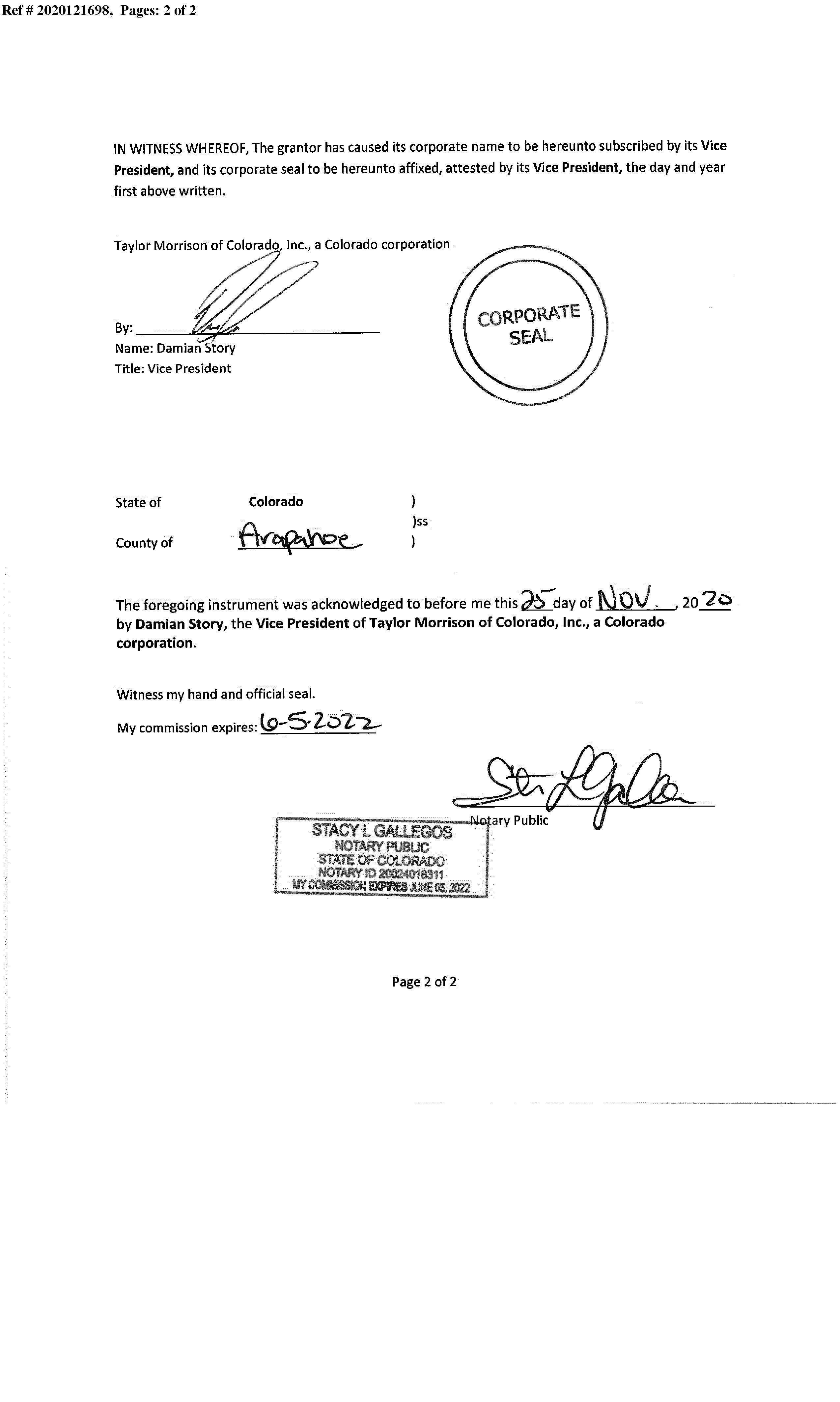Seller Name : Taylor Morrison Of Colorado Inc