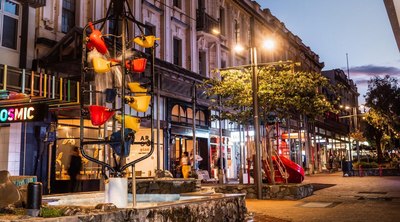 Dunedin City Council's recent upgrades to George Street has included the revitalisation of paving, street furniture, lighting and public art, as well as updating old infrastructure.