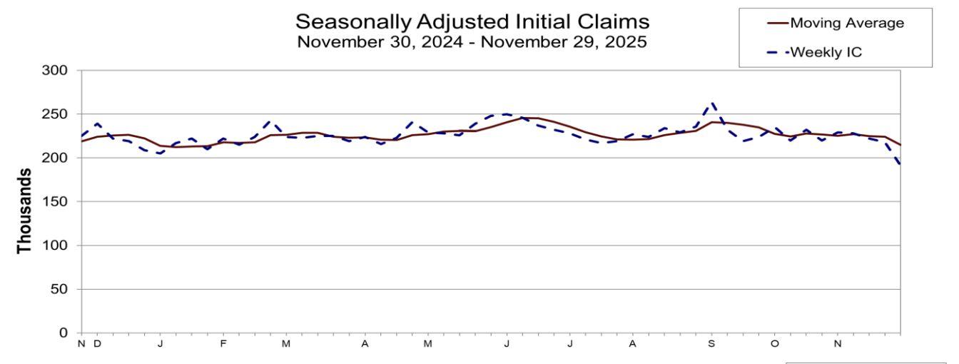 Song song, các tín hiệu thị trường lao động và hoạt động kinh doanh cũng cho thấy sự lệch pha. Tuyển dụng khu vực tư nhân bất ngờ suy giảm trong tháng 11, phần lớn do doanh nghiệp nhỏ cắt giảm nhân sự, dù số đơn xin trợ cấp thất nghiệp lại trở về mức thấp nhất từ 2022 – một dấu hiệu cho thấy doanh nghiệp khôngmuốnsathảithêm.KhốingànhDịchvụvẫnduytrìtăngtrưởngvớinhucầu mạnhvàlượngđơnhàngtồntăng,dùtuyểndụngtrongngànhnàykháítỏivàgiá tiếp tục cao. Nhìn tổng thể, bức tranh cho thấy một nền kinh tế đang nguội dần nhưng không đồng đều – vẫn dựa vào khu vực dịch vụ và thị trường việc làm –nhưngngàycàngđốimặtrủirokhilạmphátkéodàilàmsuyyếusứcbềncủahộ giađìnhtrướcthờiđiểmFEDraquyếtđịnhtiếptheo