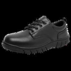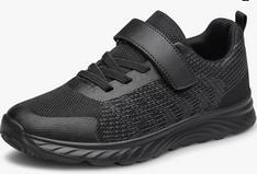 Solid black or brown (no white or colored stripes/logos), closed-toe shoes