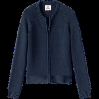 Cotton modal front zip cardigan sweater (classic navy)