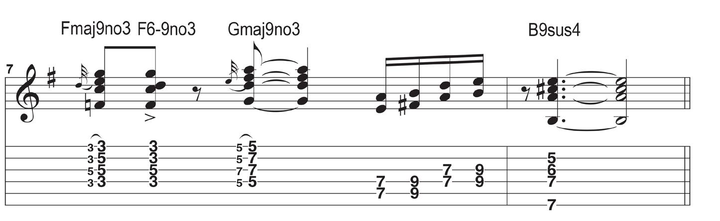 With two thirds of the song written, Dean brought it to the band at their next rehearsal session. Despite his work on the tune, “it wasn’t flowing and didn’t make sense,” he admits. “I began stabbing at these random chords, and Doug [Johnson, keyboardist] asked me, ‘What are you doing just hitting random chords? There’s no progression!’ I replied, ‘You never know, I might get lucky.’ Sometimes that’s all it takes. You close your eyes and throw the dart at your fretboard.”