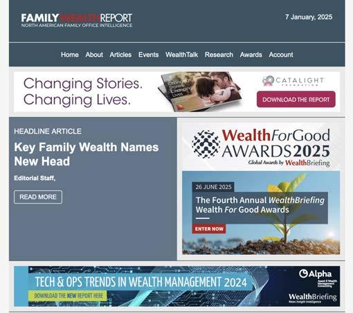 Family Wealth Report provides need-to-know business intelligence in a convenient and easy-to-read formatstraight to subscribers’ inboxes every day.
