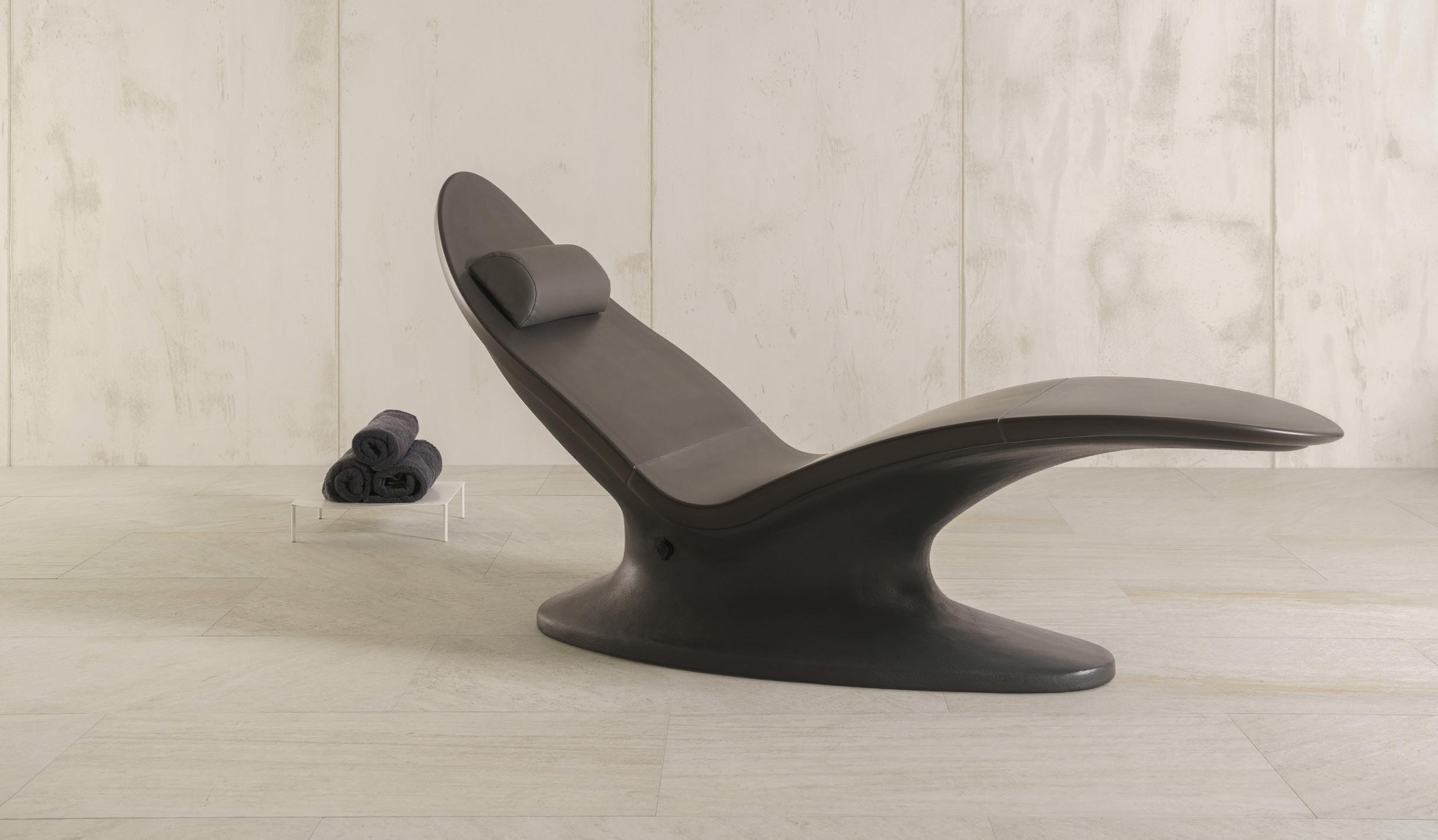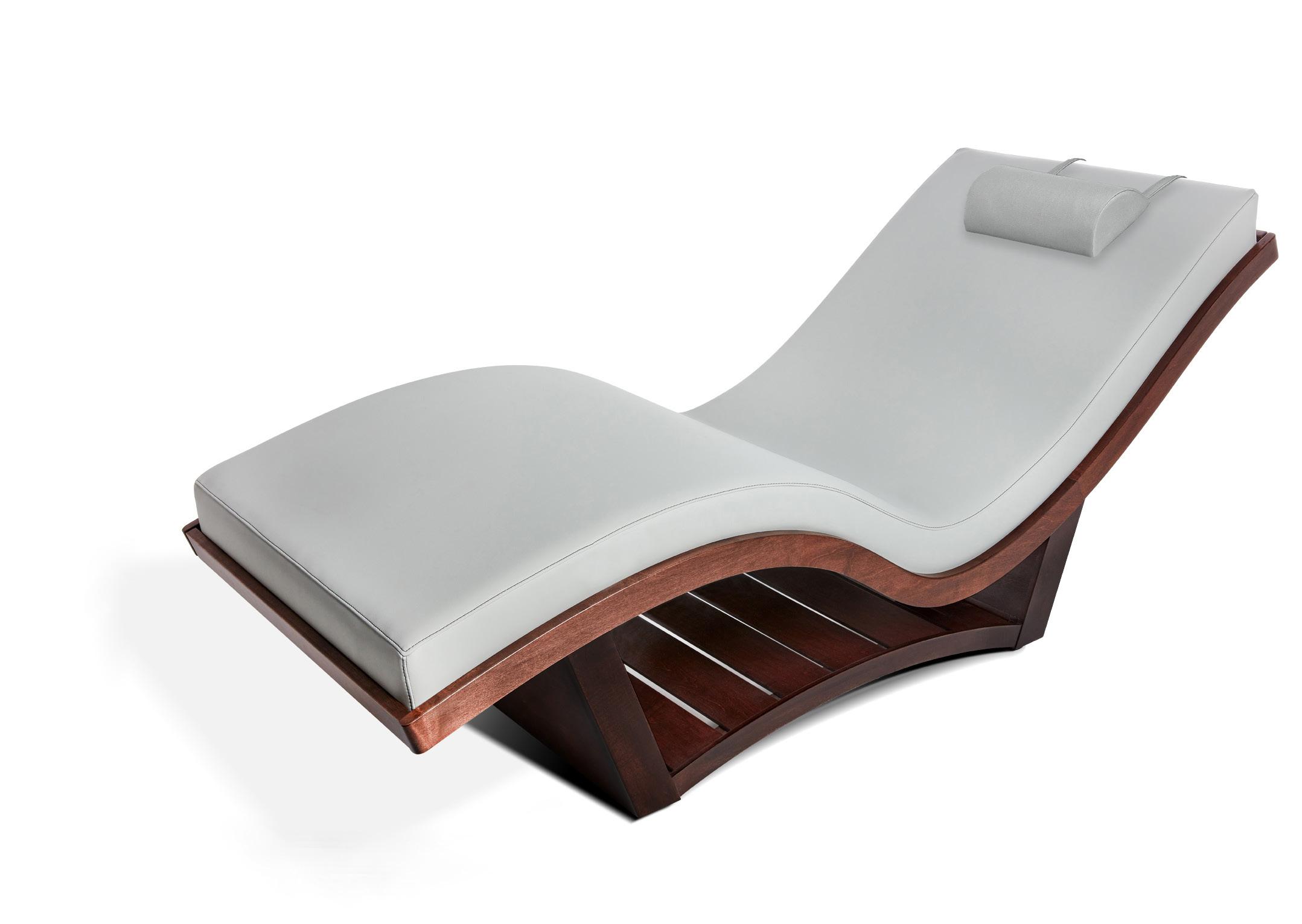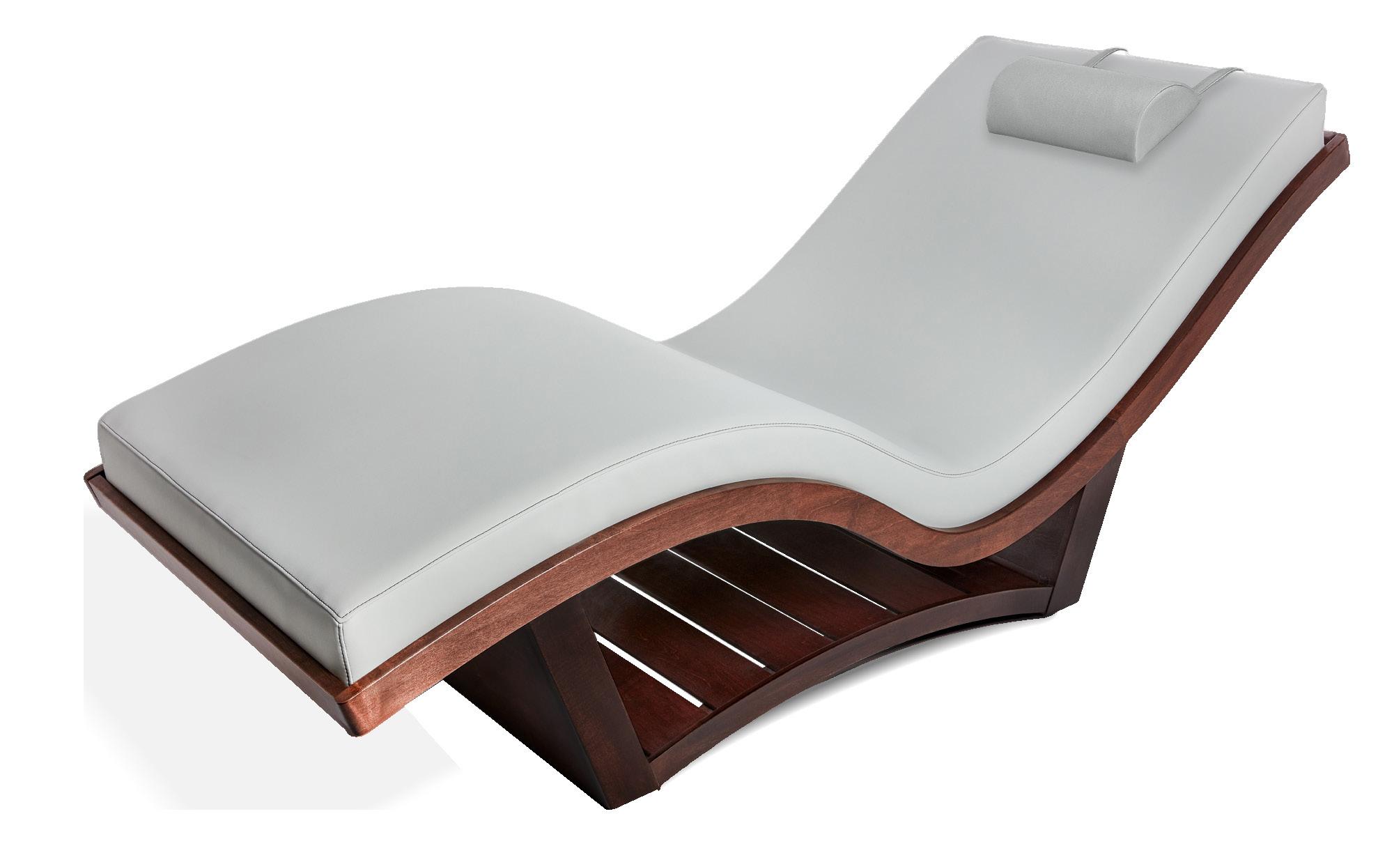 Designed for spa relaxation areas, the NuWave lounger features zero-gravity positioning and can be used in head, hand and foot treatments. Available in two models – NuWave and NuWave S – the loungers have sleek hardwood bases and replaceable Strata mattresses covered in Living Earth Crafts’ Comfort-Flex PU fabric and Tri-Bond technology to prolong their life cycle.