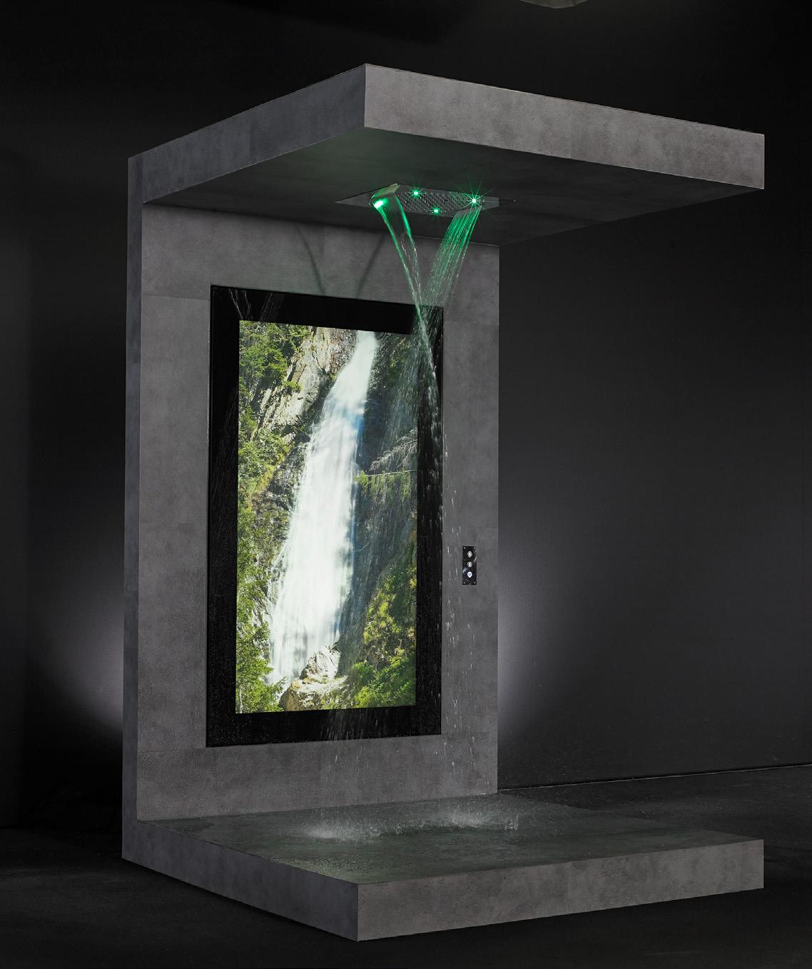 Guests can choose from one of three programmes – Waterfall, Tropical Rain and Fog Shower – each with its own video, light, aroma and audio settings.