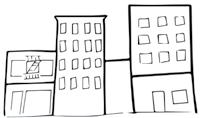 I [image of letter I] hear [image of ears] (drawing of a street and of feet; R for rhyme, S for street, and F for feet).