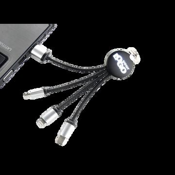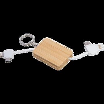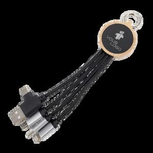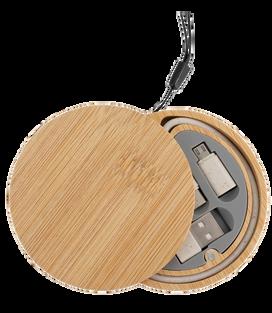Całość zapakowana jest w drewniane pudełko z wieczkiem na magnes zamieszczonym na wygodnej smyczy W zestawie końcówki: USB, micro USB, USB type-CC, usb lightning