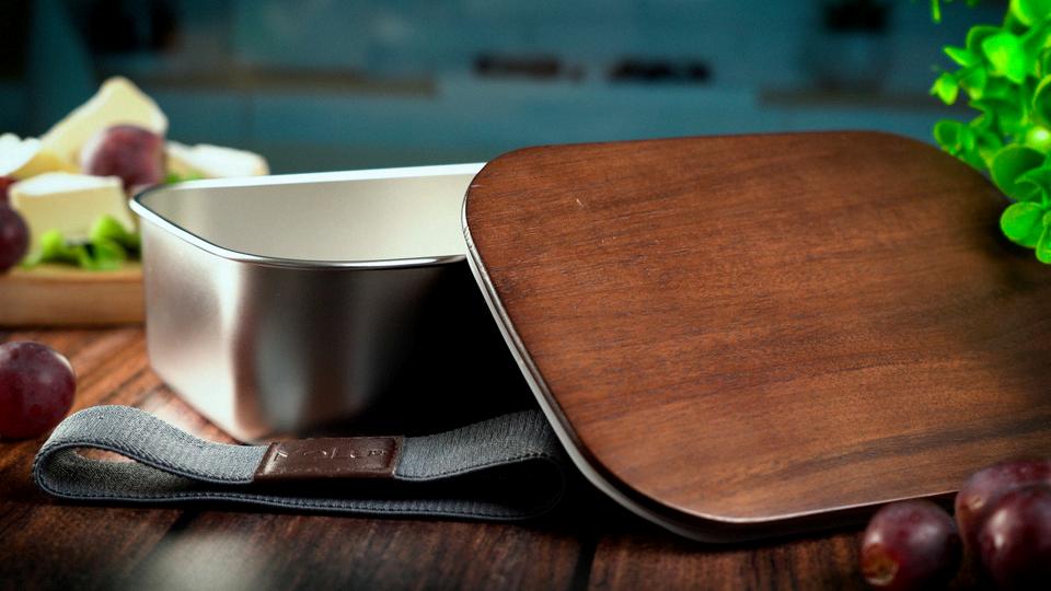 Wykonany z aluminium z recyklingu ze srebrnymi elementami i bambusową strefą uchwytu
