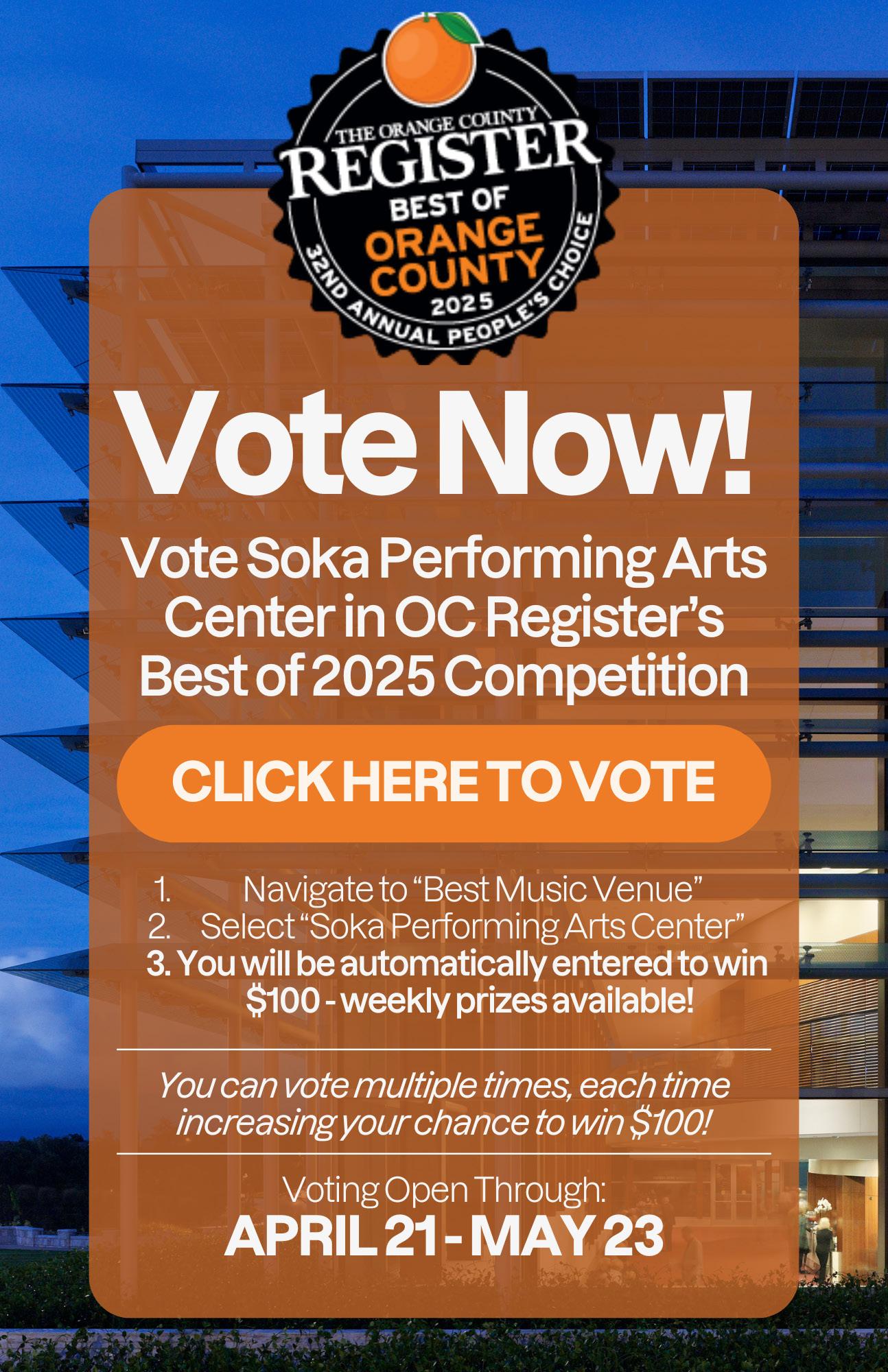The Soka Performing Arts Center deeply appreciates the support of its sponsors and donors, and makes every effort to ensure accurate and appropriate recognition. Contact Renée Bodie, General Manager at (949) 480-4821 to make us aware of any error or omission in the foregoing list.