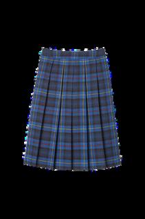 Plaid Pleated Knee-Length Skirt (Blue Red Plaid)