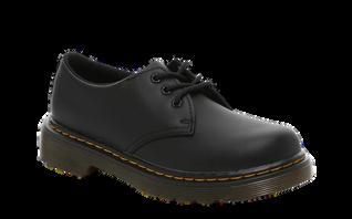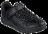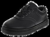 Black Leather or Leather-Like Sneaker/Dress Sneaker with Black Laces or Velcro (No canvas or mesh sneakers)