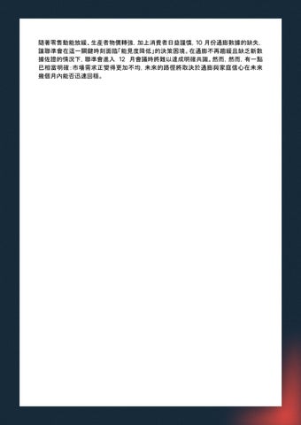 隨著零售動能放緩、生產者物價轉強,加上消費者日益謹慎,10 月份通膨數據的缺失, 讓聯準會在這一關鍵時刻面臨「能見度降低」的決策困境。在通膨不再趨緩且缺乏新數 據佐證的情況下,聯準會進入 12 月會議時將難以達成明確共識。然而,然而,有一點 已相當明確:市場需求正變得更加不均,未來的路徑將取決於通膨與家庭信心在未來 幾個月內能否迅 回穩。