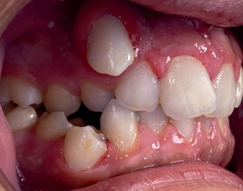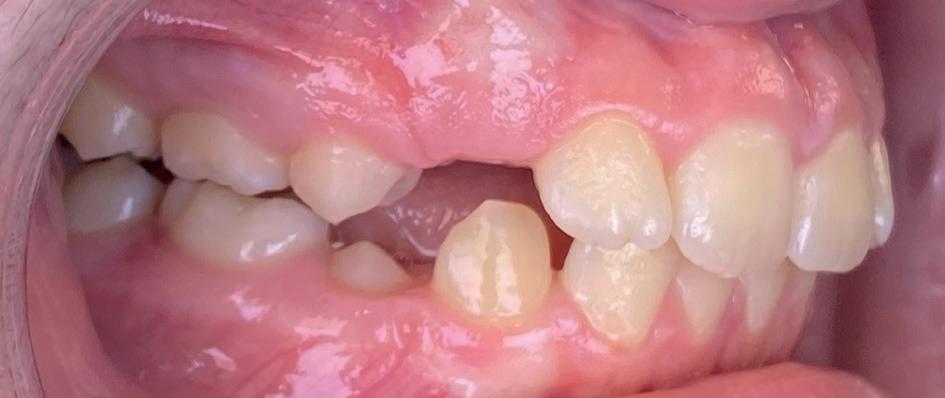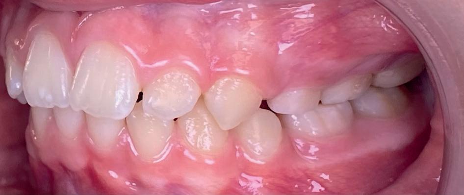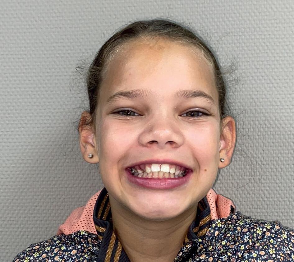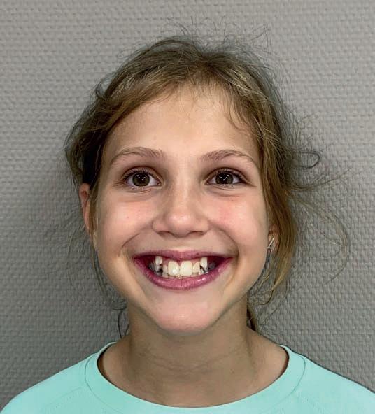 Casus: Blix – Ruimte creëren zonder extracties met D-gainer en Damon Ultima Blix (10 jaar) presenteerde zich met een klasse II-occlusie, smalle boven- en onderkaak en ruimtegebrek voor de doorbraak van de hoektanden en premolaren. Hoewel haar gezicht in balans was, zou zonder behandeling het gebrek aan ruimte toenemen en de diepe beet verder verergeren.