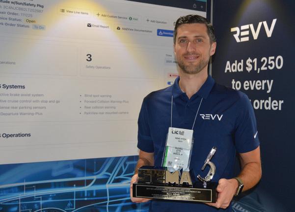 MIKE FITCH, vice president of revenue for Revv ADAS, holds the trophy for Best ADAS Product after the SEMA Best New Products Awards.