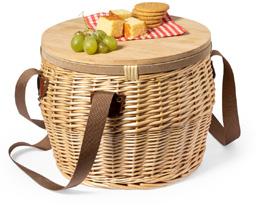 Suteikite savo iškyloms stiliaus su šiuo retro šaltkrepšiu. Pagaminta iš vytelių iš natūralios apdailos, su rudu pečių dirželiu. Atsparus bambuko dangtis/stalas ir izoterminis aliuminio intarpas viduje.