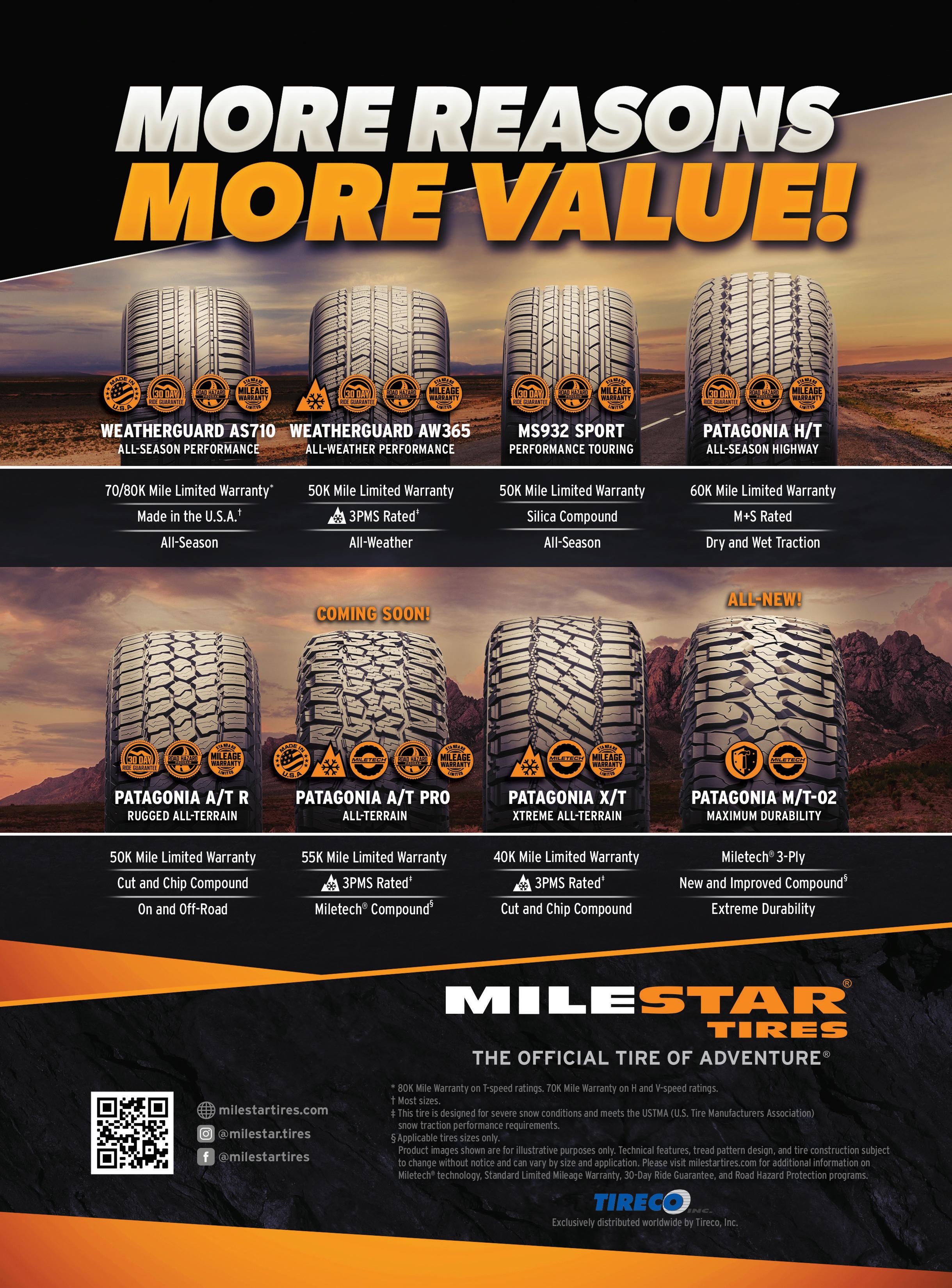 MTD March 2023 66 ADVERTISER PAGE WEBSITE ACDC 41 www.fixhybrid.com Aftermarket Auto Parts Alliance Inc. 49 www.ultimatevehiclegiveaway2023.com Alligator 65 www.alligator-tpms.com/mtd American Omni Trading 25 www.thunderertireusa.com Apollo Vredestein Tires Inc. 21 www.vredestein.com Apollo Vredestein Tires Inc. 43 www.apollotrucktires.com Aston Technologies 55 www.astontechnologies.com Atturo Tires 5 www.atturo.com Autel 9 www.autel.com BendPak Inc. 51 www.bendpak.com/ergochair BKT USA Inc. 11 www.bkt-tires.com California Tire Dealers Association 33 www.catiredealers.com Continental Corporation 63 www.autodiagnostpms.com General Tire 13 www.generaltire.com/promotion GT Radial 23 www.gtradialsmartprogram.com Hunter Engineering Company 61 www.hunter.com/alignment-machines K & M Tire Inc. 19 www.kmtire.com Kenda Tires USA IBC www.kendatractionrewards.com Kumho Tire USA Inc. 34-35 www.kumhotire.com Linglong Americas Inc. 7 www.linglongtire.com Maxxis Tires 27 www.maxxisaccelerate.com Mighty Auto Parts 53 www.mightyautoparts.com Milton Industries 57 www.miltonindustries.com Nitto Tire U.S.A. Inc. OBC www.nittotire.com Prinx Chengshan North America Inc. 39 www.fortunetireusa.com Sentury Tire USA 17 www.landsailtires.com Tireco Inc. 29 www.milestartires.com Transamerica Tire Company Ltd. IFC www.predatortires.com Trimax Tire 45 www.trimaxtire.com Western Tires Inc. 31 www.jk-usa.com WheelerShip LLC 37 wholesale.wheelership.com Yokohama Off-Highway Tires America Inc. 15 www.yokohama-oht.com ZC Rubber America Inc. 47 www.arisuntires.com