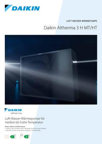 * Daikin Altherma 3 H HT Modell (Klassen 14, 16, 18) erreich 70°C VT. Daikin Altherma 3 H MT erreicht VT von 65 °C. 1) Mit Ausnahme der Version "Zwei Heizkreise"