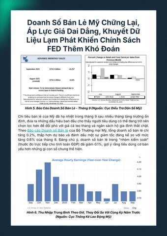 DữliệukinhtếvĩmôMỹchothấykhoảngcáchngàycànglớngiữasứcmuacủa người dân và làn sóng đầu tư từ doanh nghiệp. Số liệu Bán lẻ tháng 9 gần như đứnglạivớimứctăng0,2%,trongđónhómhànghóacốtlõiphụcvụtínhGDPcòn giảmxuốngdưới0.Giácaodotácđộngthuếquanvàthunhậptăngchậmkhiến ngườidânthậntrọnghơn.Trongkhiđó,lạmphátđầuvàovẫndaidẳng:PPItăng 0,3%, chi phí năng lượng nhảy 3,5%. Chỉ số niềm tin người tiêu dùng rơi xuống