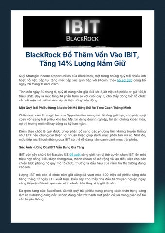 Tuần qua cũng đánh dấu sự mở rộng rõ rệt trong mức độ tham gia của tổ chức vào Bitcoin. Hồ sơ mới của BlackRock gửi SEC cho thấy quỹ Strategic Income Opportunities Portfolio đã tăng thêm 14% lượng nắm giữ IBIT, nâng tổng số lên 2,39 triệu cổ phiếu. Động thái này cho thấy ngay cả các quỹ trái phiếu truyền thống cũng đang xem Bitcoin ETF như một công cụ đa dạng hóa, trùng nhịp với sự hỗ trợ ngày càng lớn dành cho IBIT, bao gồm đề xuất tăng giới hạn vị thế quyềnchọnđểphụcvụcácchiếnlượctổchứcquymôlớn.