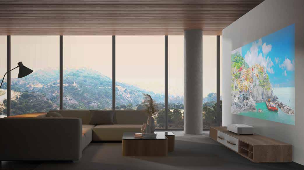 ohne zusätzlichen Zuspieler die Integration von Google TV. Ein Low-Latency-GamingModus mit einer Eingabeverzögerung unter 20 ms über HDMI ermöglicht flüssiges Spielen auf der Leinwand. | kl