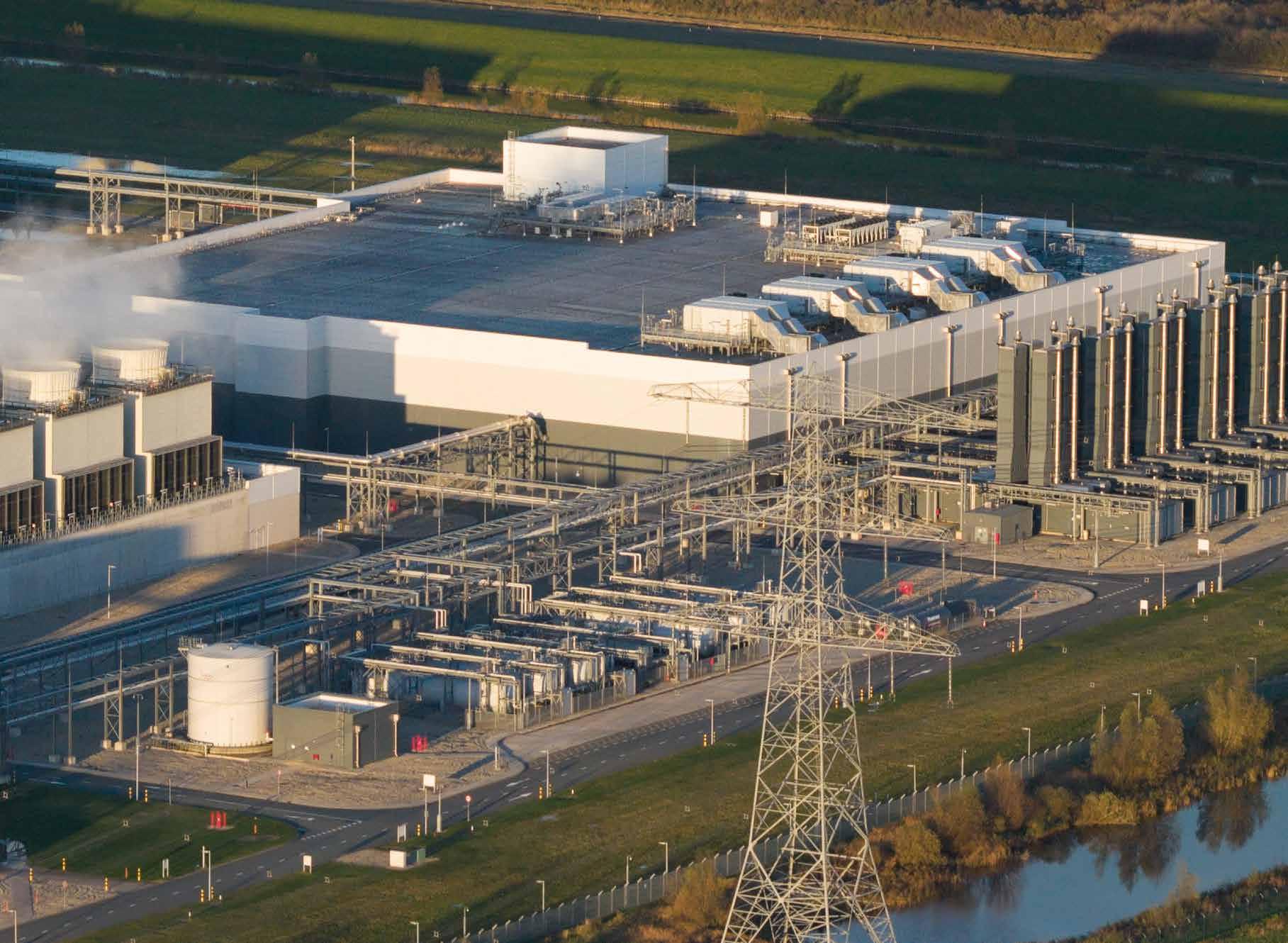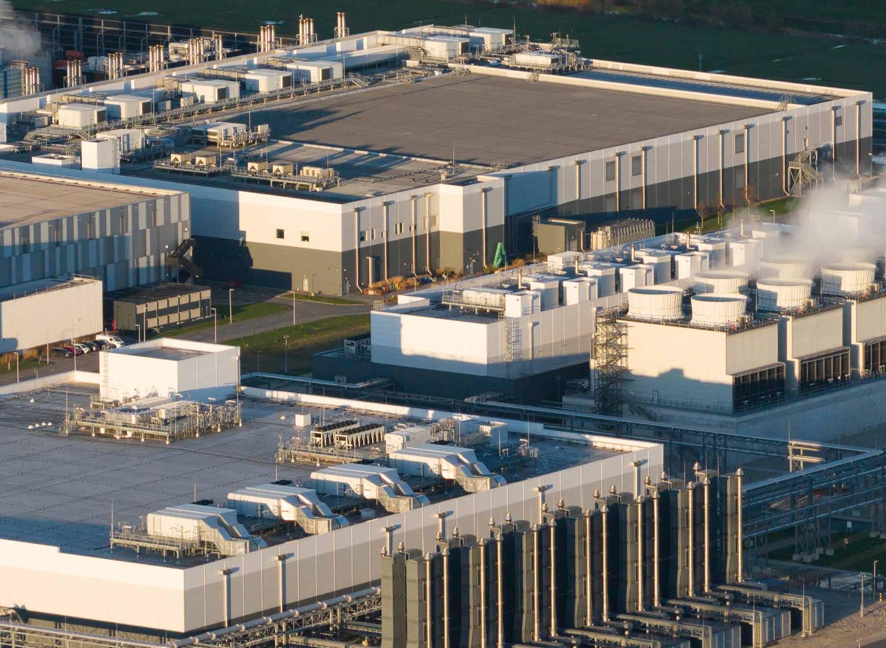 Das Luftbild eines großen Rechenzentrums in den Niederlanden illustriert den Aufwand, der für Kühlung und Stromversorgung notwendig ist.