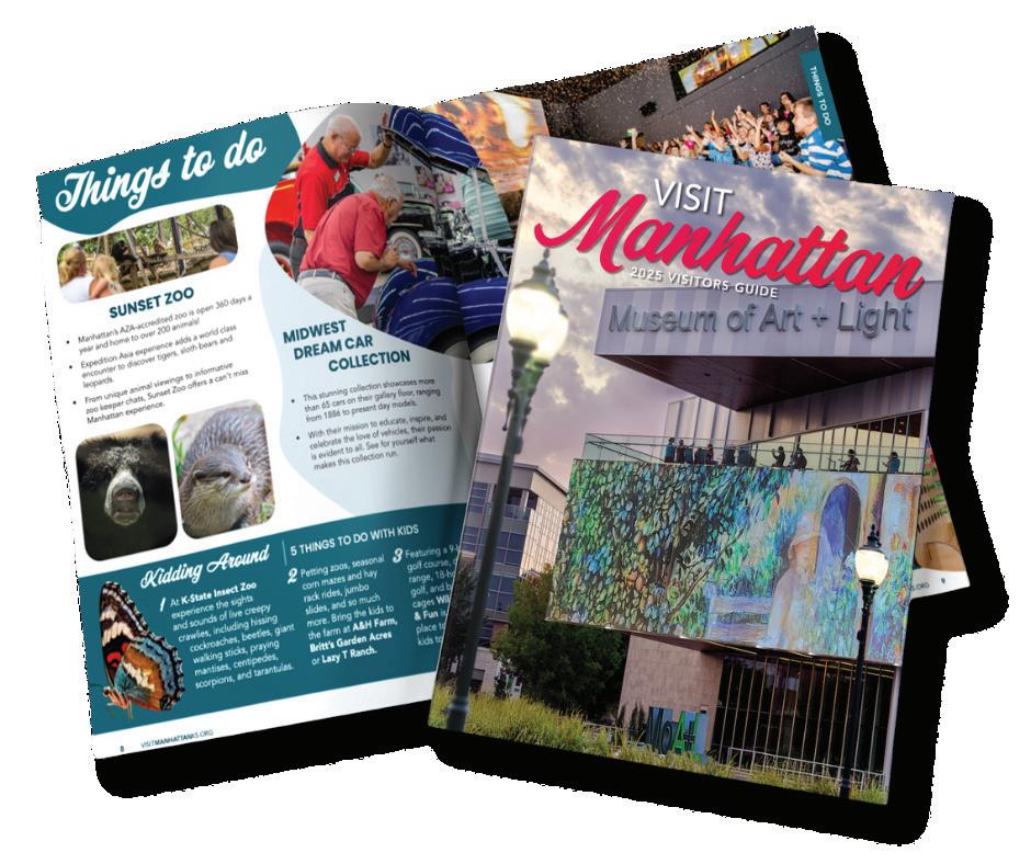 Hosting the Kansas Tourism Conference in October was a great opportunity to welcome more than 200 tourism leaders from across the state and highlight Manhattan as an ideal conference destination. Attendees were wowed by the opening social at the Museum of Art + Light, and the unveiling of the Kansas Travel Guide cover the next day underscored why MoA+L earned that recognition. We were also thankful for our local agritourism partners, who added a memorable touch by bringing special “guests” for attendees to enjoy during session breaks.